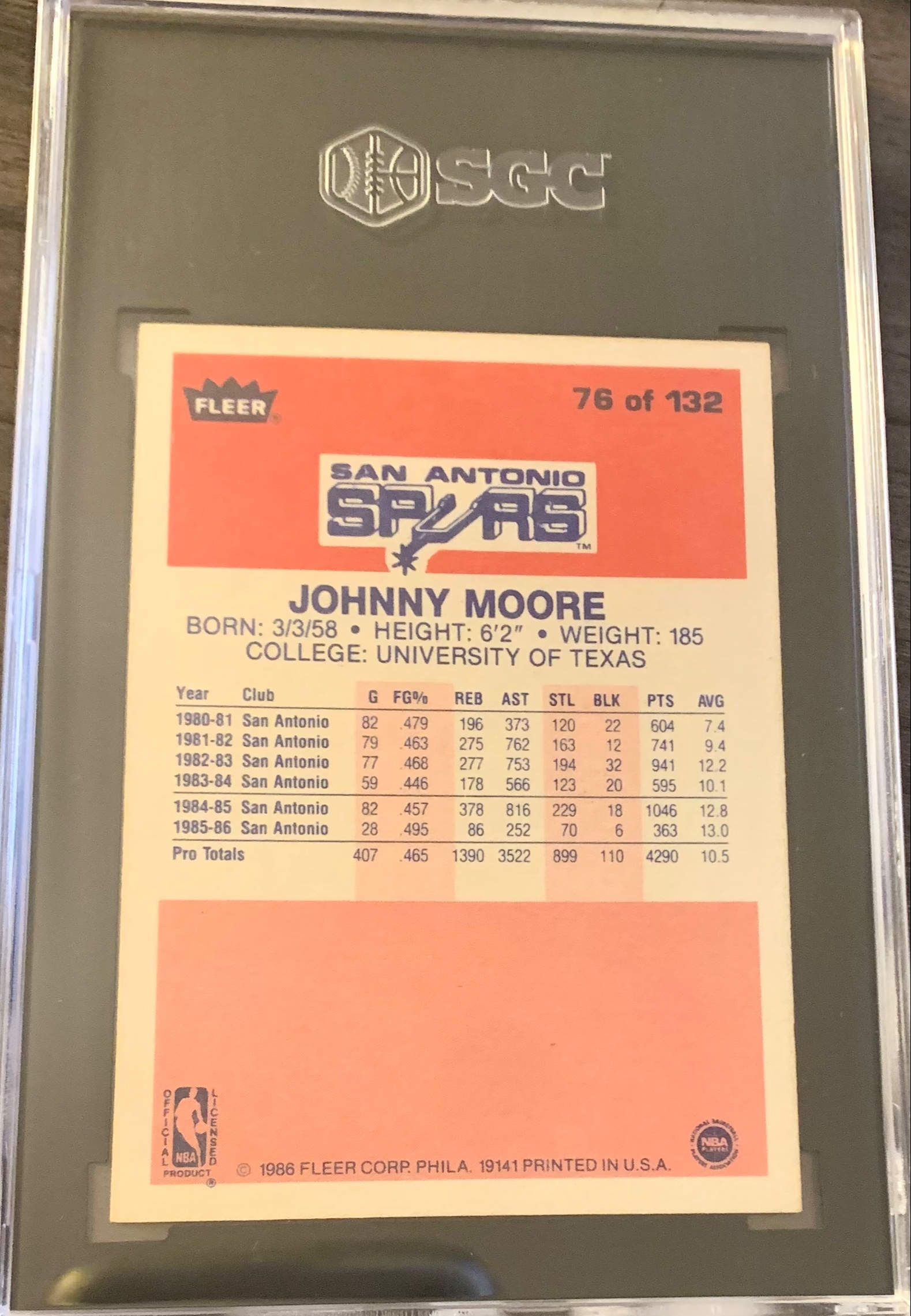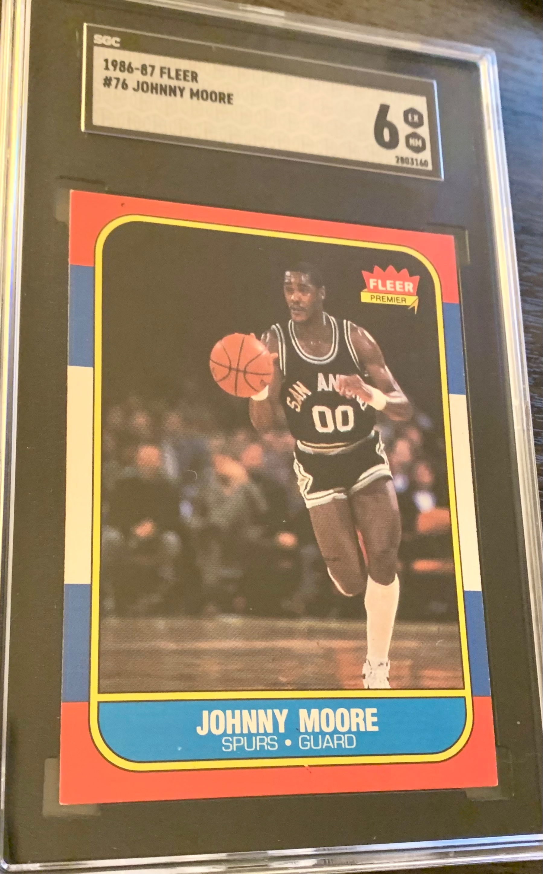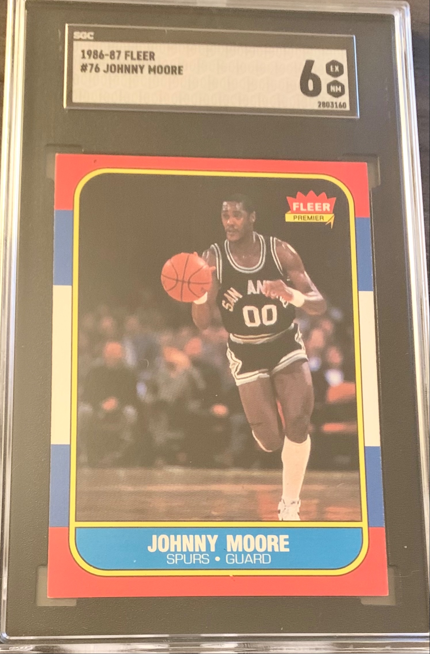 1986-87 Fleer Basketball Card #76 Johnny Moore - Graded SGC 6 EX NM. Great looking crisp card. Crystal clear slab! Well centered card! Thanks for your interest.