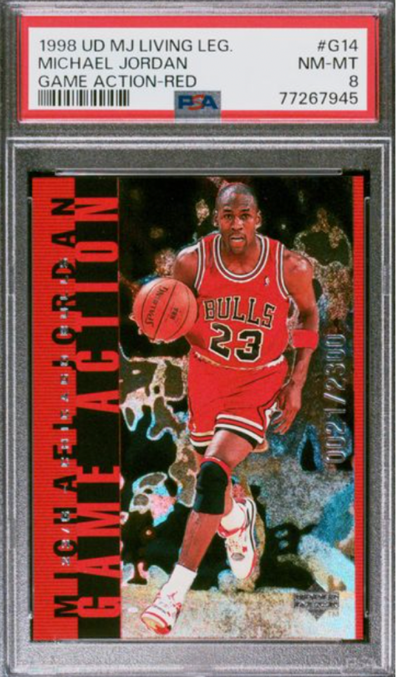 1998 Upper Deck MJ Living Legend Michael Jordan Game Action Red PSA 8 #G14 SUPER LOW POP