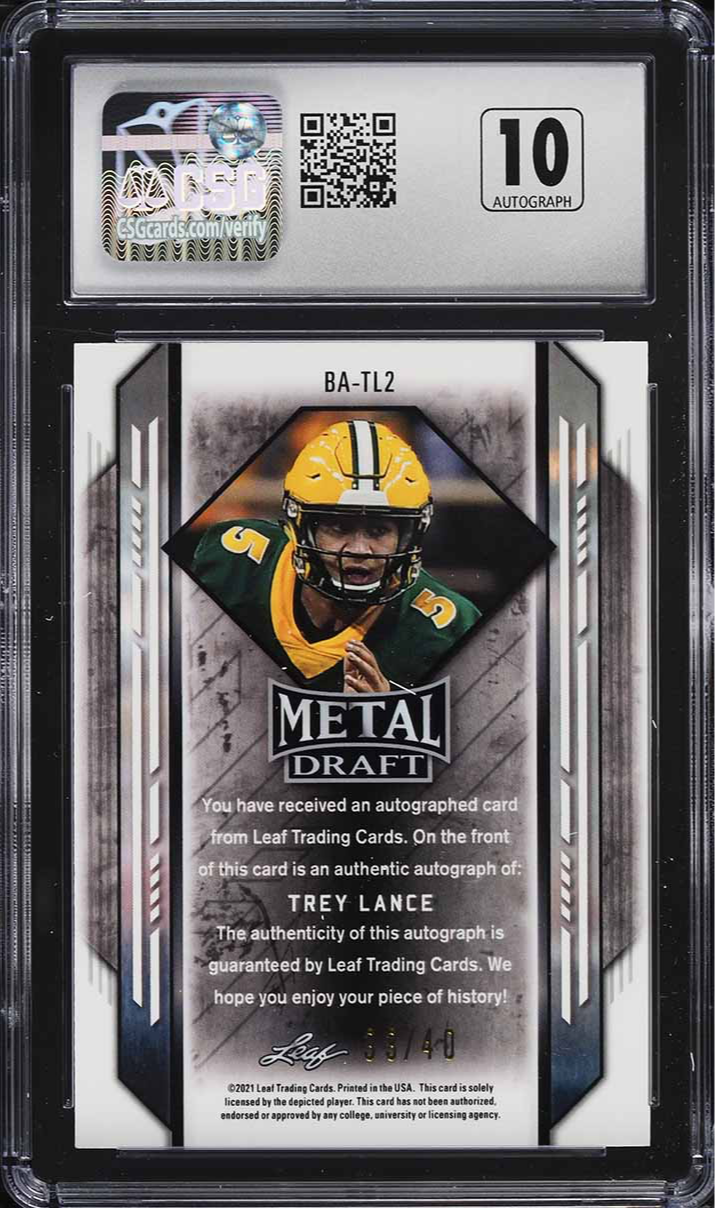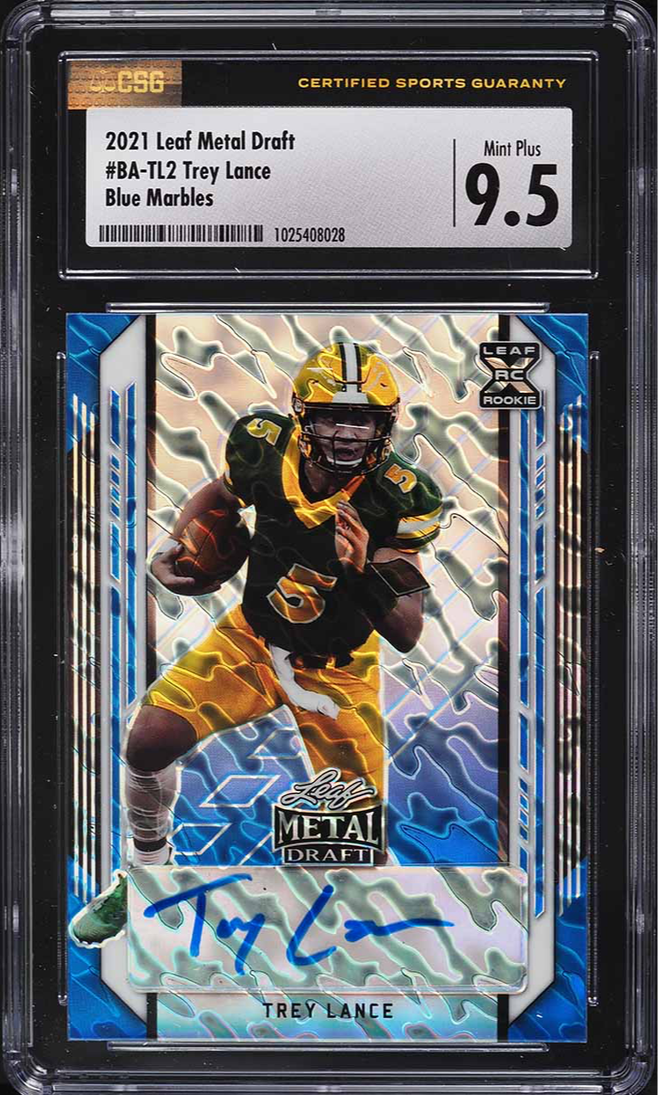 2021 LEAF METAL DRAFT BLUE MARBLES (#/40) TREY LANCE ROOKIE AUTO - CSG 9.5 MINT+