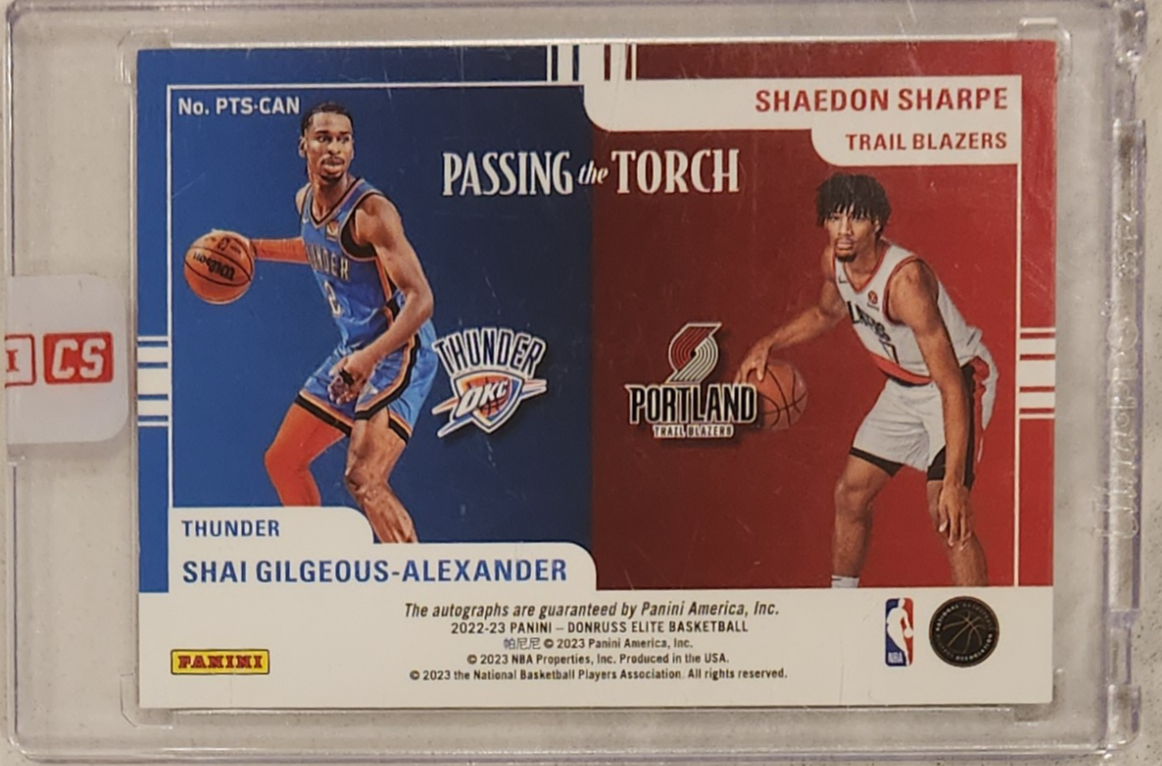 2022-23 Panini Donruss Elite Shai Gilgeous-Alexander Shaedon Sharpe Passing The Torch Dual Auto SSP