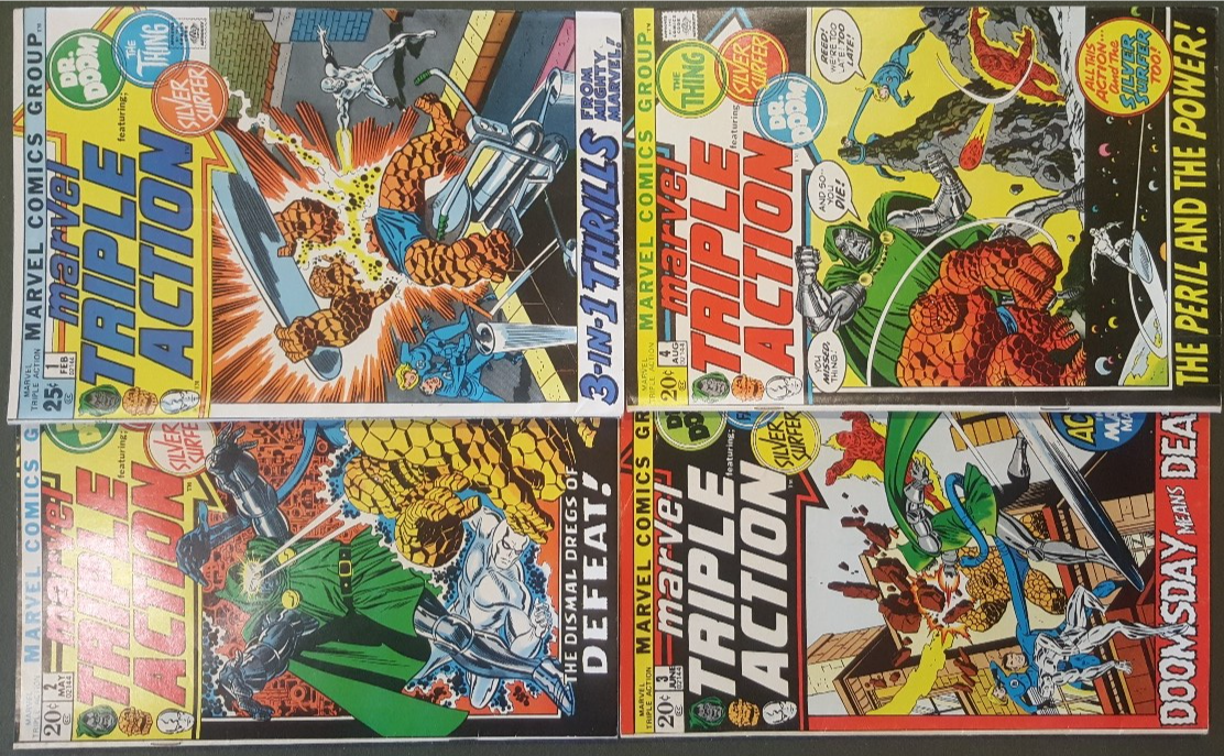 MARVEL TRIPLE ACTION (1973) #1 (FN/VF), #2 (VF/NM), #3 (FN) and #4 (FN+). 2022 Overstreet value for this 4 issue group is $71.00 based on condition. (BS99)
