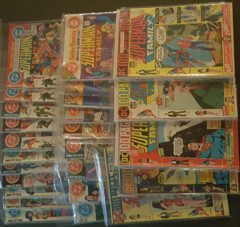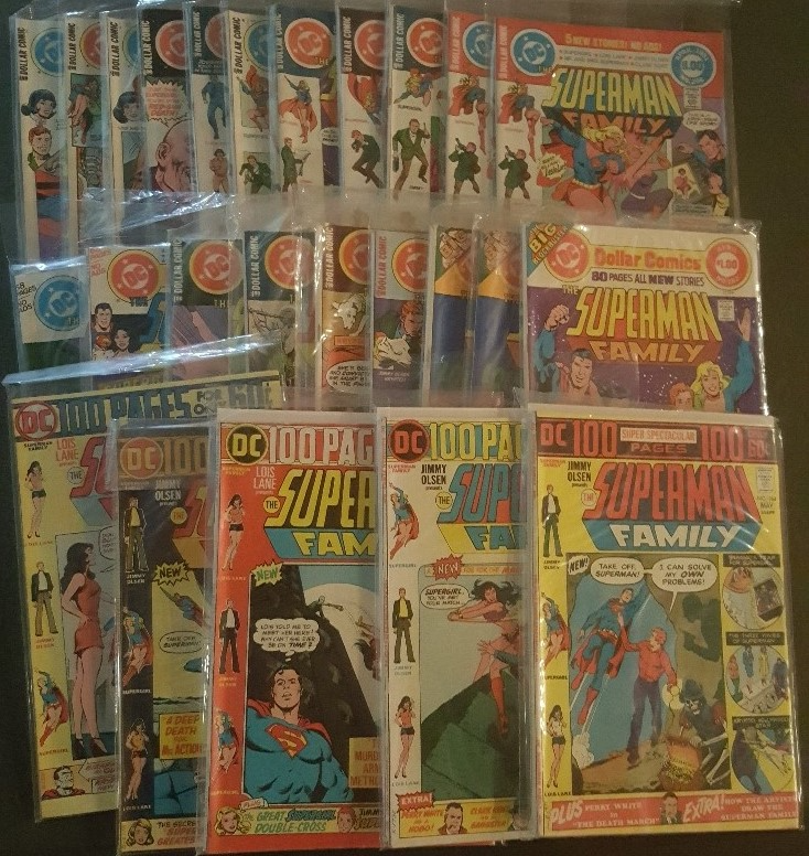 Superman Family #164-167, 169, 182, #183 (GVG 3.0), 183, 186 (FN 6.0), 188-191, 193, 206 (FN+ 6.5), 206, 207-209, 211, 212, 214, and 218-220. Condition overall averages VF 8.0 or better (unless otherwise noted). 2022 Overstreet value for this group of 25 comics is $265.00 (LL25)