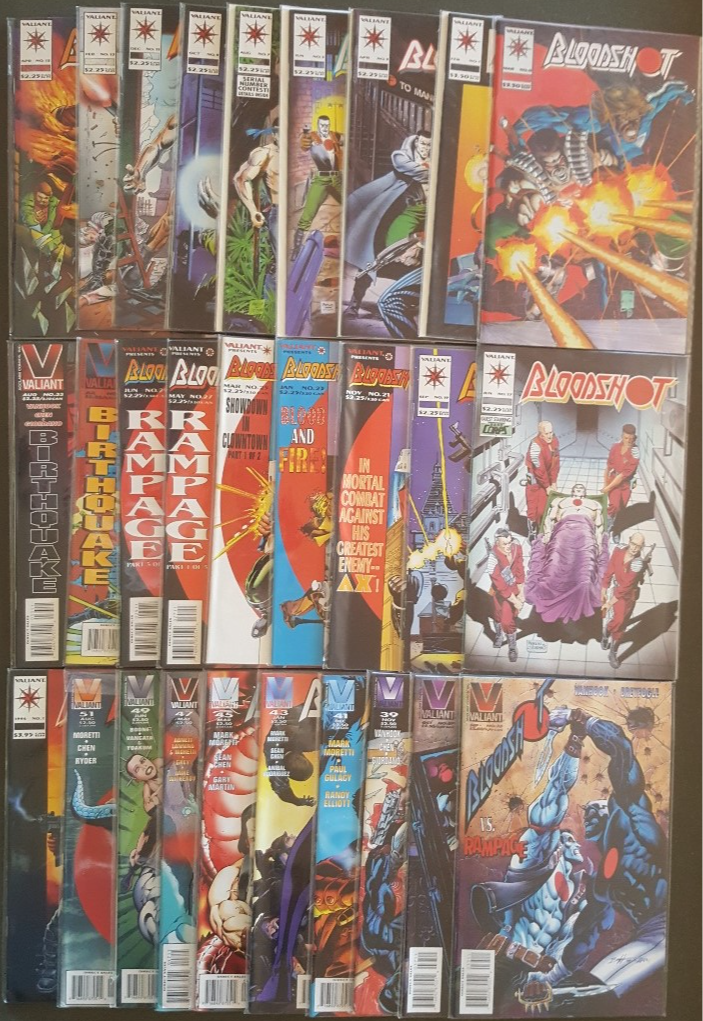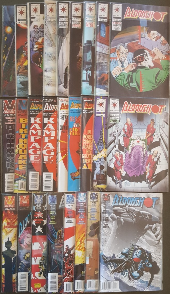 Bloodshot (1993-1996) #0-51 + Yearbook #1. Overall grade for the lot is NM 9.4 or better. 2022 Overstreet value for this 53-issue lot of high-grade comics is $380.00 based on condition.