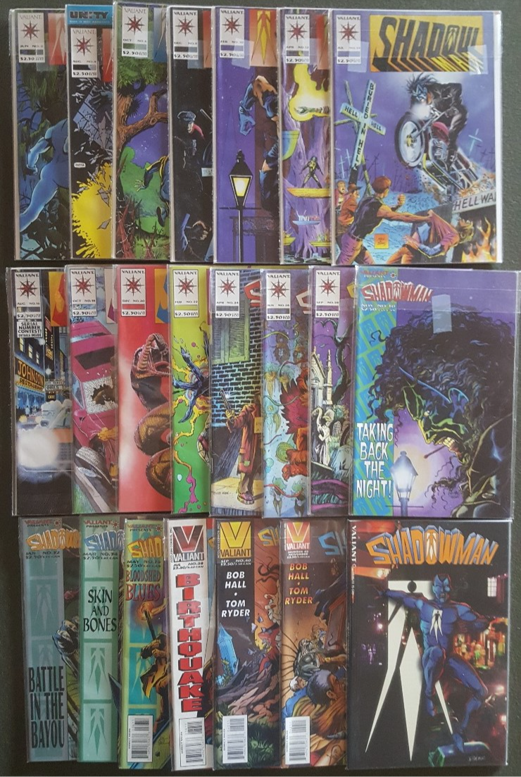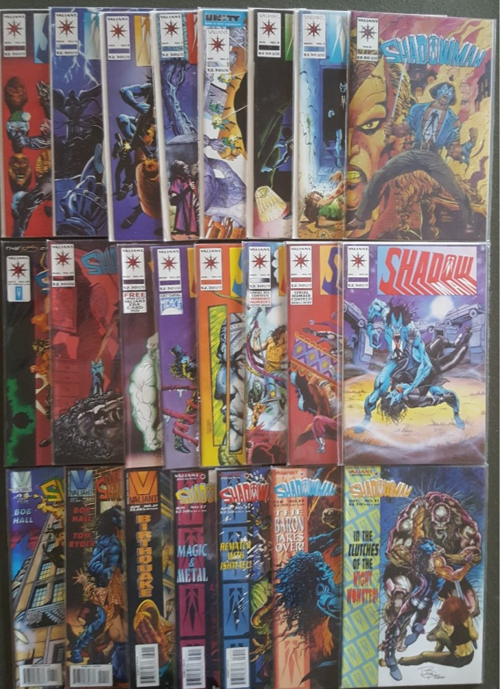 Shadowman (1992-1995) #0 (chromium), 1-43 + Shadowman Trade Paperback (1994) #1 and Darque Passages (1994) #1. Overall grade for the lot is NM 9.4 or better. 2022 Overstreet value for this 46-issue lot of high-grade comics is $360.00 based on condition.