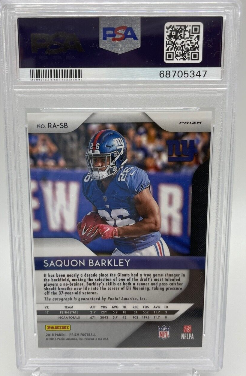 2018 PANINI PRIZM SAQUON BARKLEY RC AUTO - LAZER #SB PSA 10 GEM MT GIANTS POP 2!