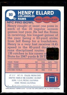 Henry Ellard 1985 Topps Archives Fan Favorites On Card Autograph Auto #80 Los