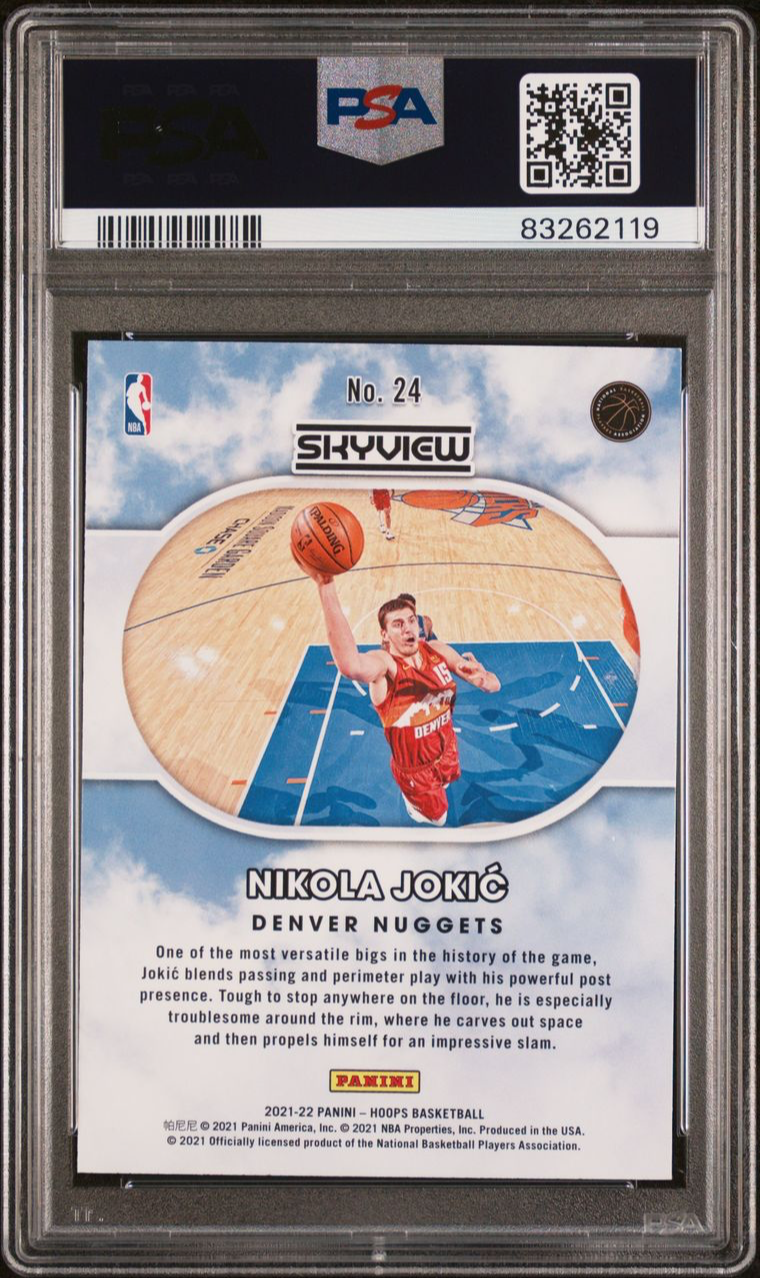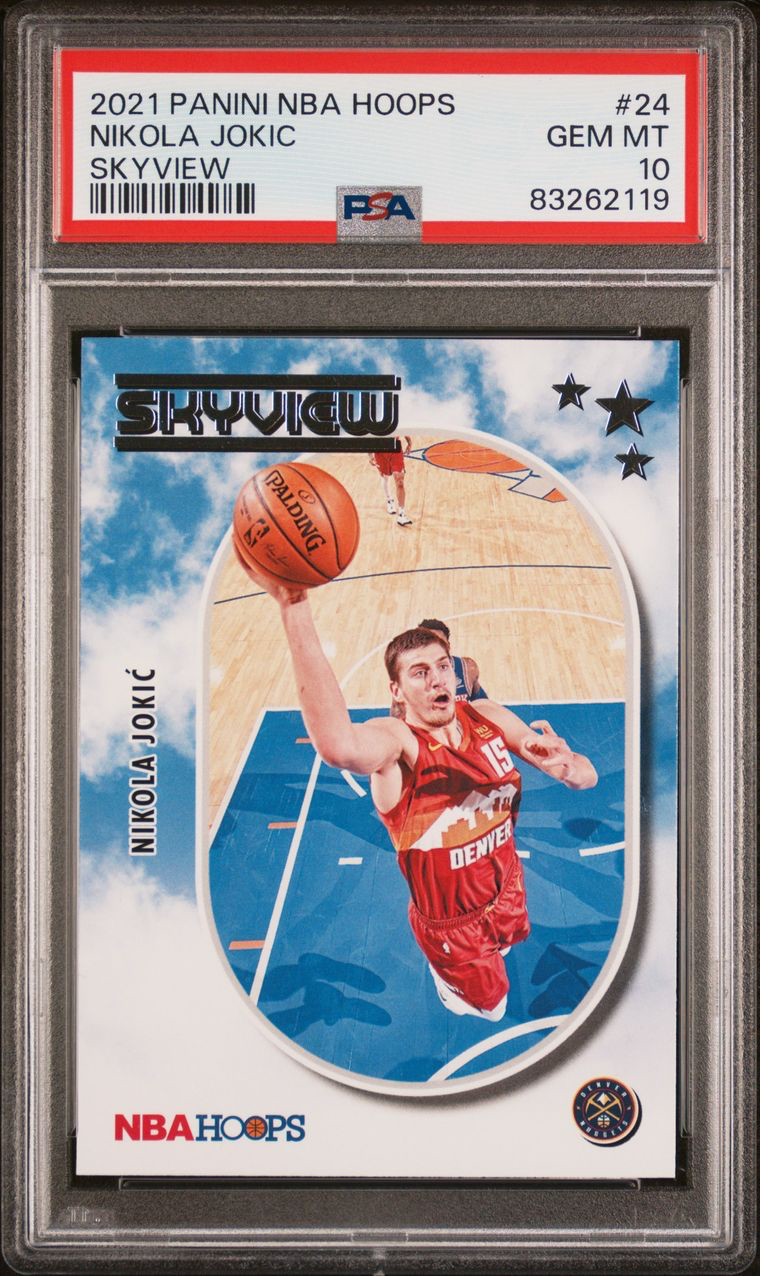 2021 Panini NBA Hoops Skyview Nikola Jokic #24 - Graded PSA 10 GEM MT Mint Basketball Card.