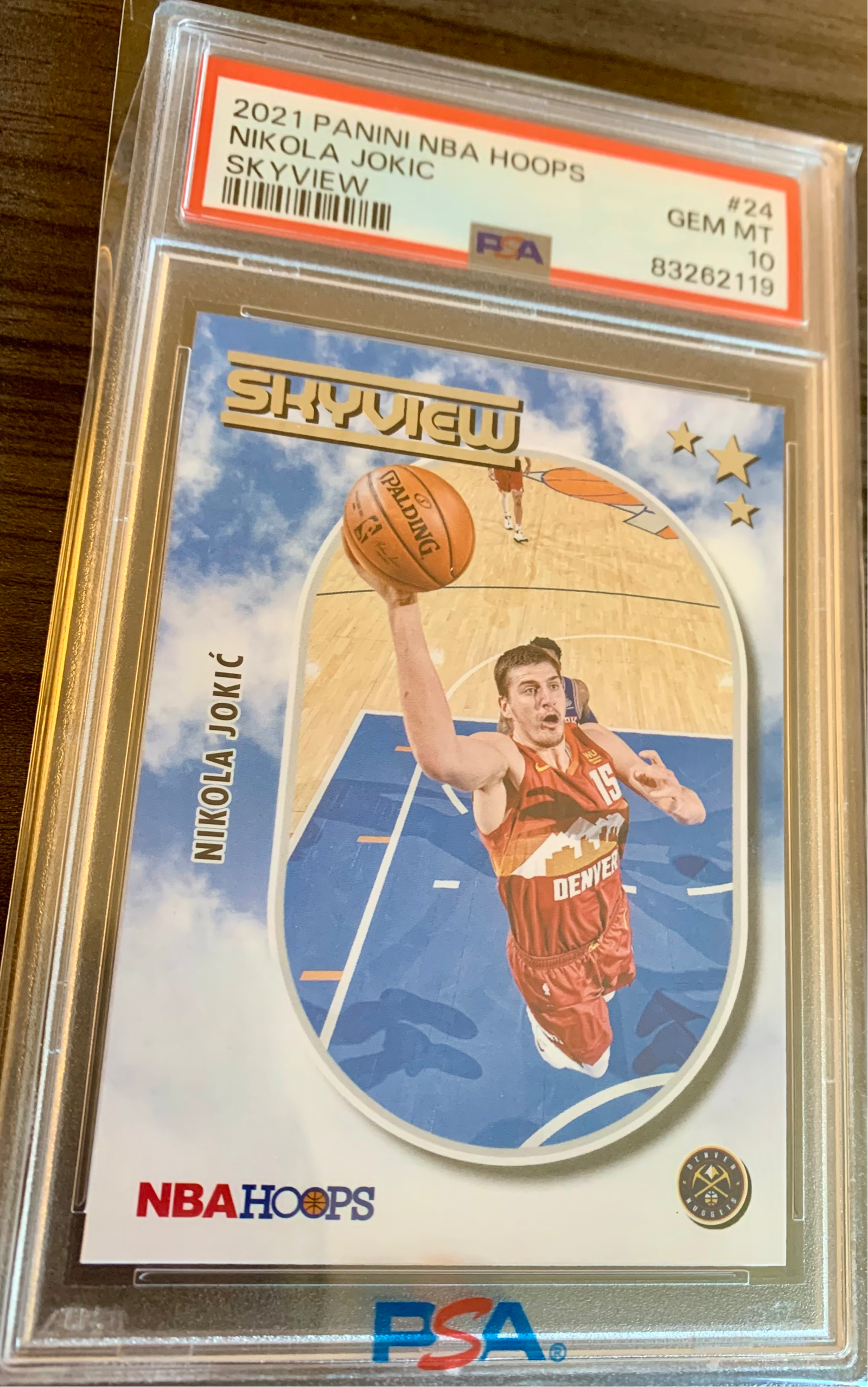 2021 Panini NBA Hoops Skyview Nikola Jokic #24. Graded PSA 10 GEM MT Mint. Pop 3! Great looking card. Thanks for your interest.