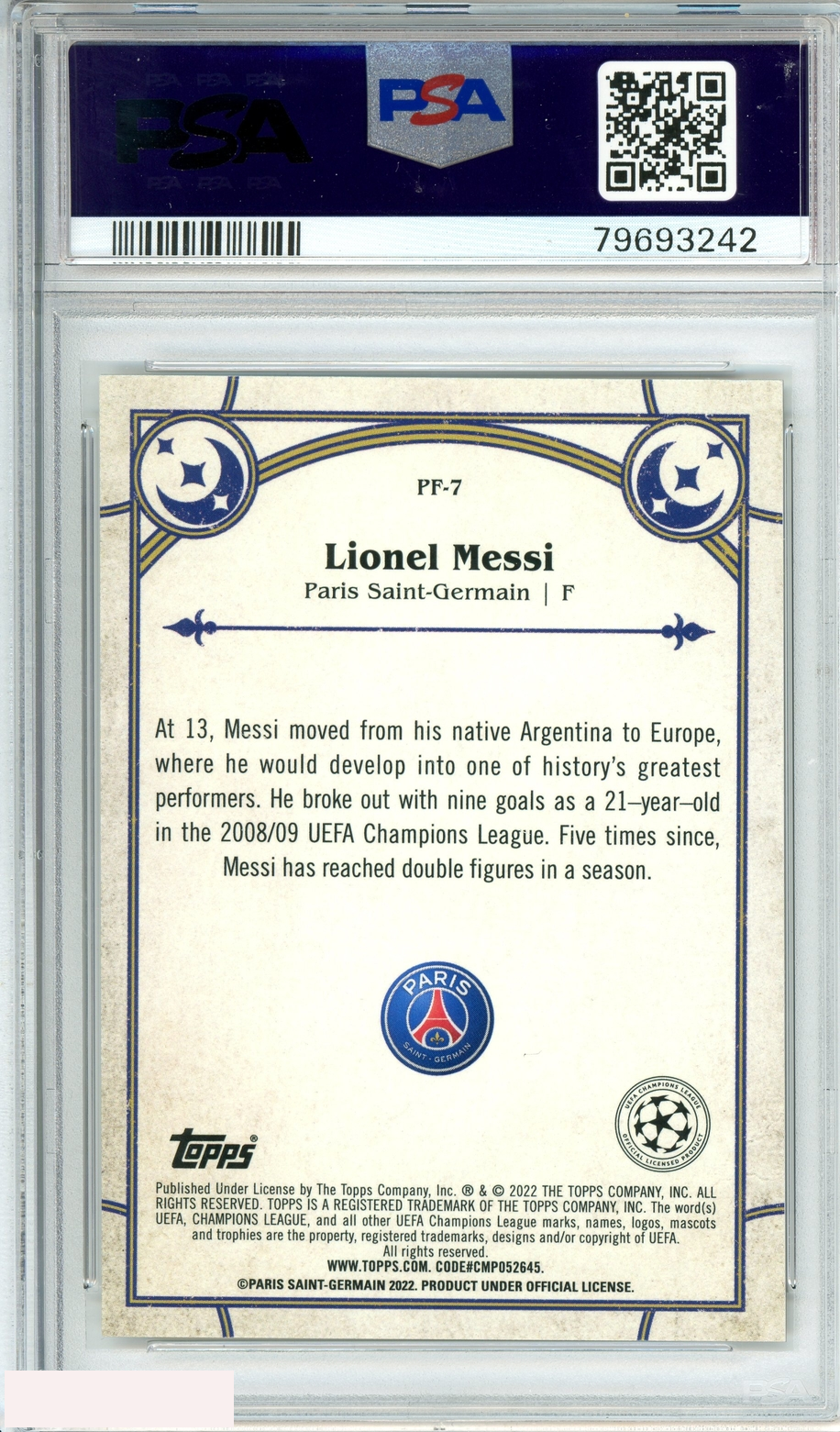 2021-2022 TOPPS MERLIN CHROME UEFA LIONEL MESSI #PF7 PROPHECY FULFILLED PSA 10 G