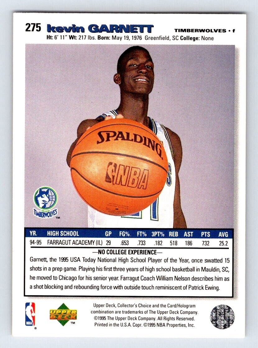 1995 95 Collector's Choice Kevin Garnett 275 RC Listed With Mascot.