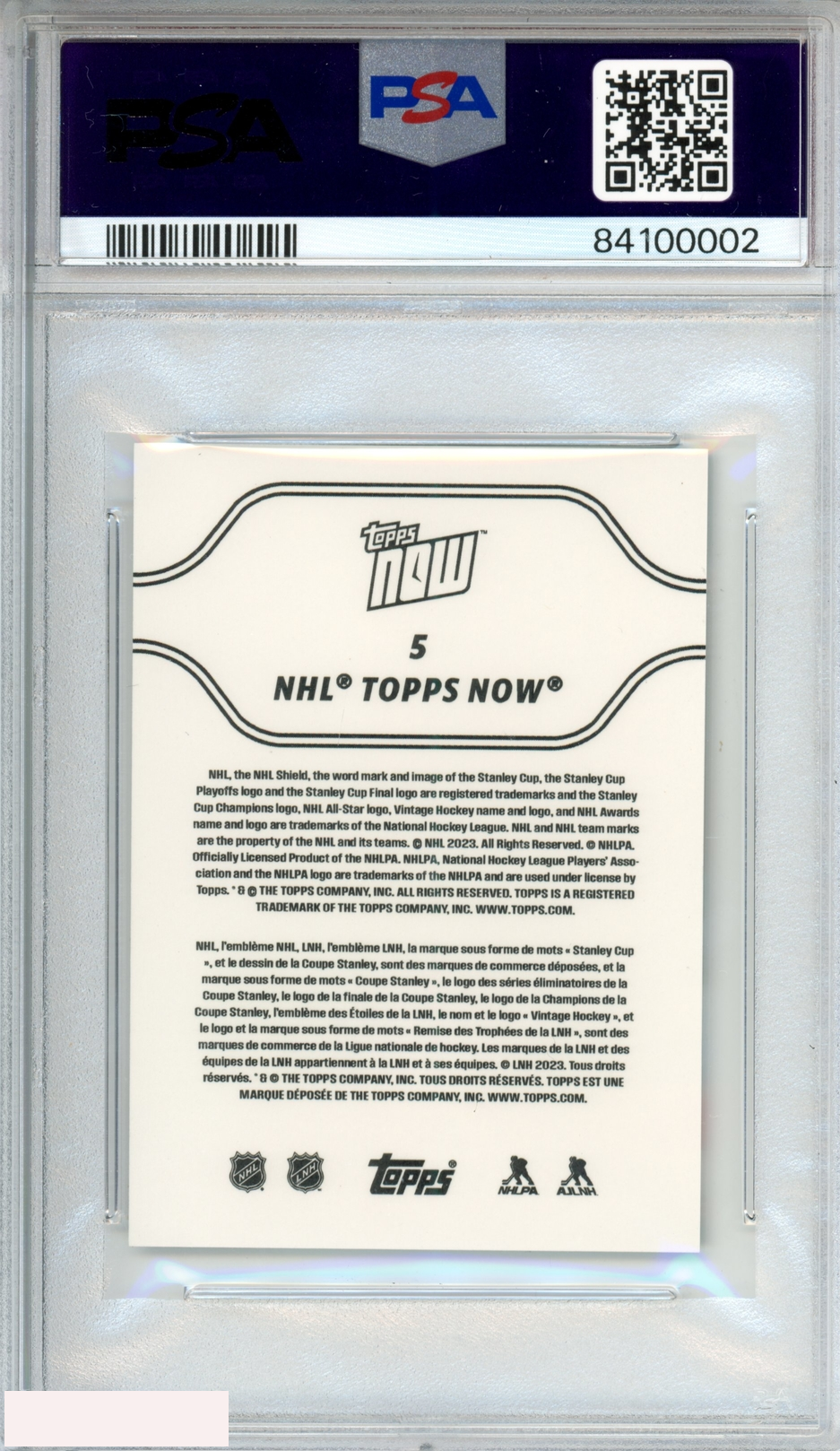 CERT NUMBER - 84100002 LABEL TYPE - LIGHTHOUSELABEL YEAR - 2023 BRAND - TOPPS NOW NHL STICKERS CARD NUMBER - 5 PLAYER - CONNOR BEDARD VARIETY - BLUE ICE CARD GRADE - 10 GRADE DESC - GEM MT GRADED - YES ORIGINAL TEAM - CHICAGO BLACKHAWKS CONDITION - GEM MINT ROOKIE 9 OF 10