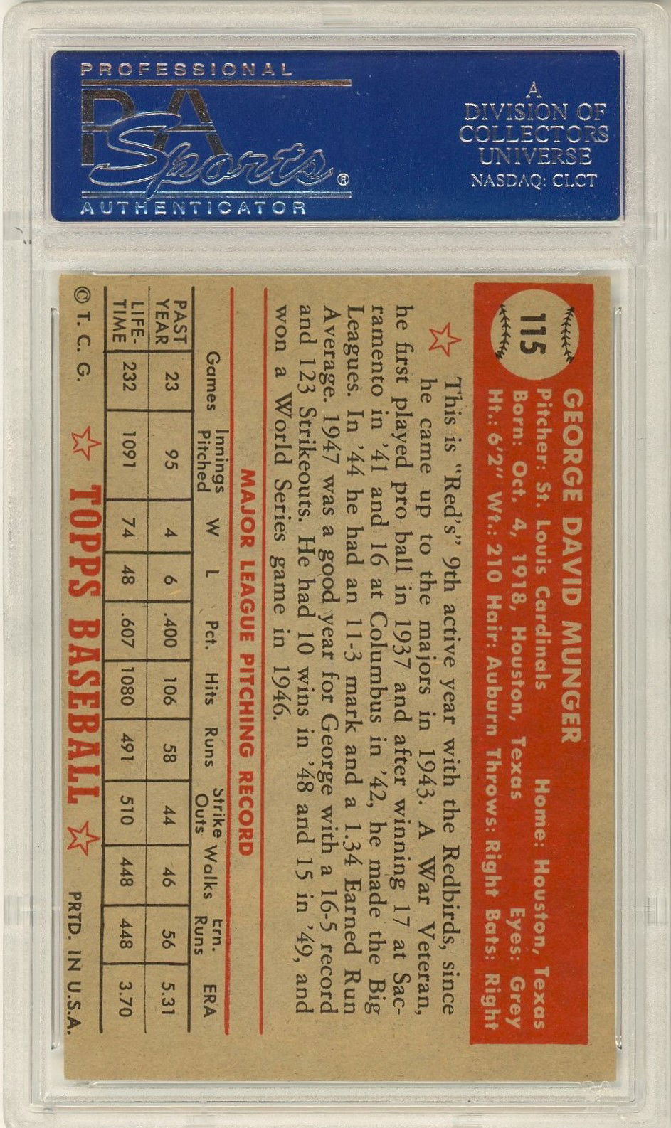 1952 Topps George Munger #115 PSA 5. Listed With Mascot.