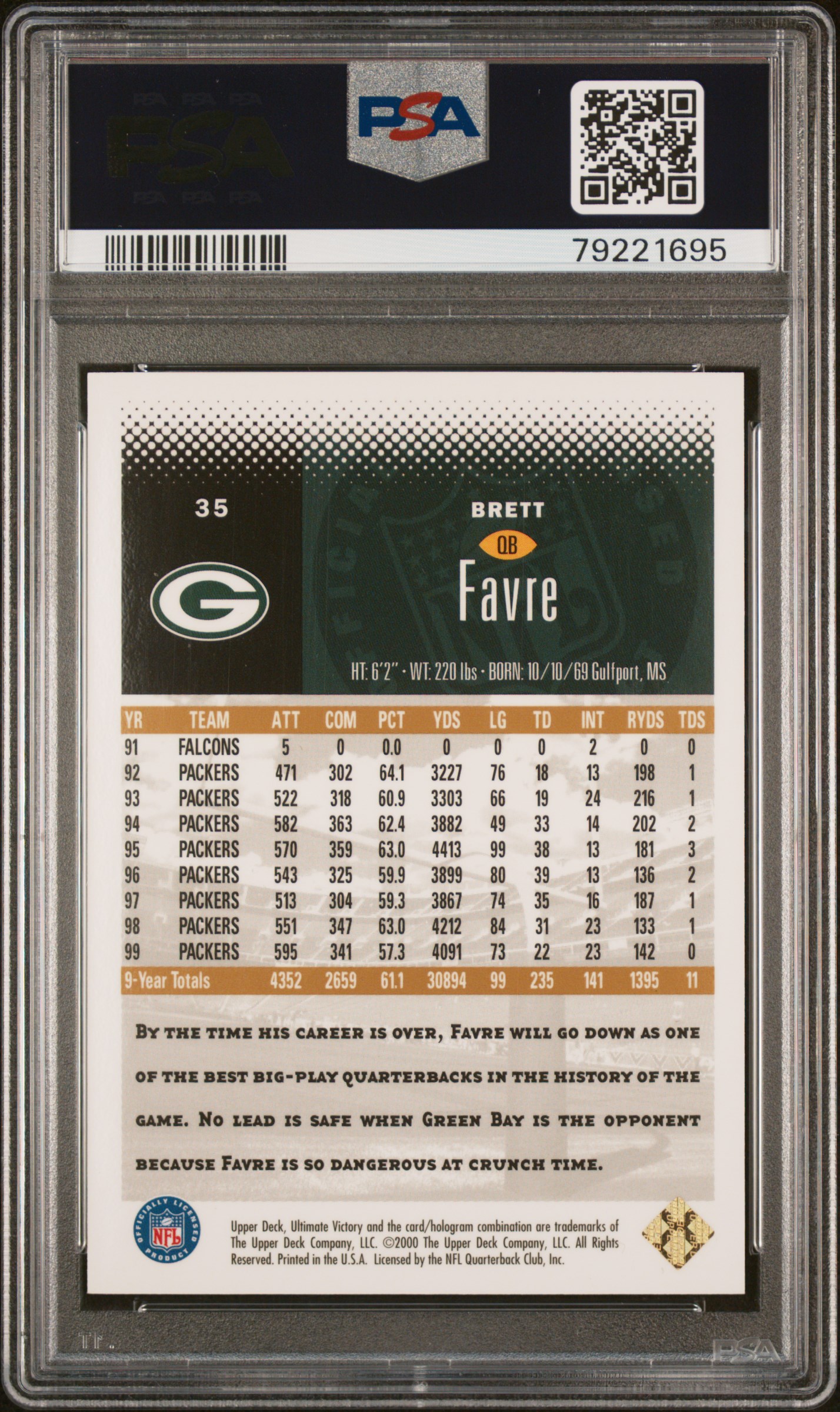 2000 Ultimate Victory Brett Favre #35 Parallel 25 PSA 10
