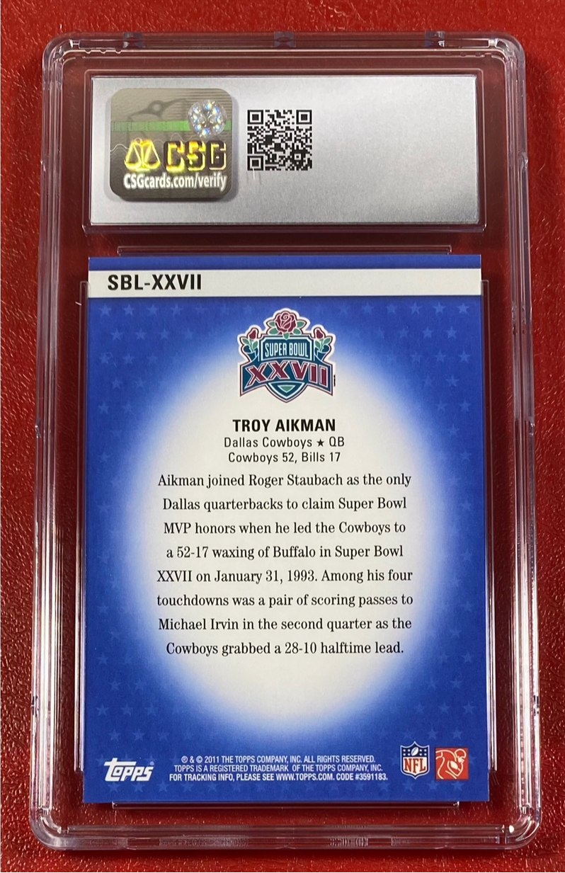 2011 Topps Super Bowl Legends Troy Aikman #SBL-XXVII CSG 10 Dallas Cowboys