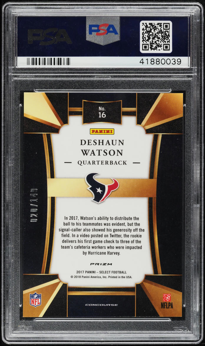 2017 SELECT BLUE PRIZM DESHAUN WATSON ROOKIE /149 #16 PSA 10. Low population. Shipped from my vault address.