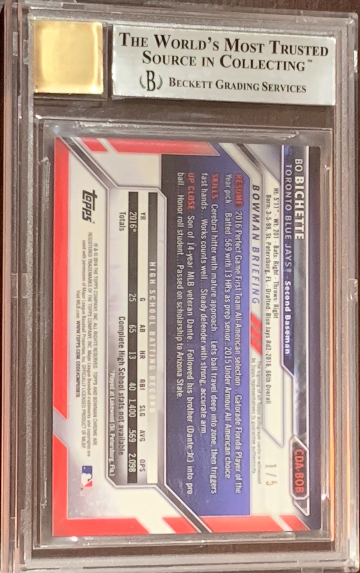 2016 Bowman Chrome Bo Bichette Red Wave #/5 BGS 9