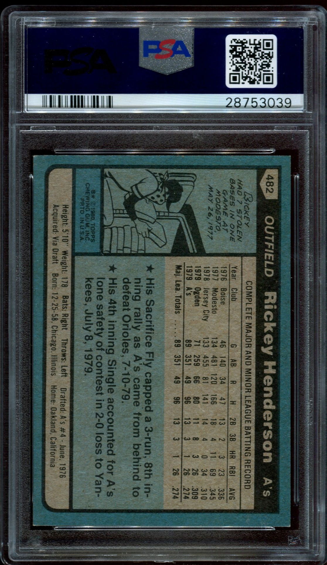 1980 Topps #482 Rickey Henderson PSA 8 ROOKIE