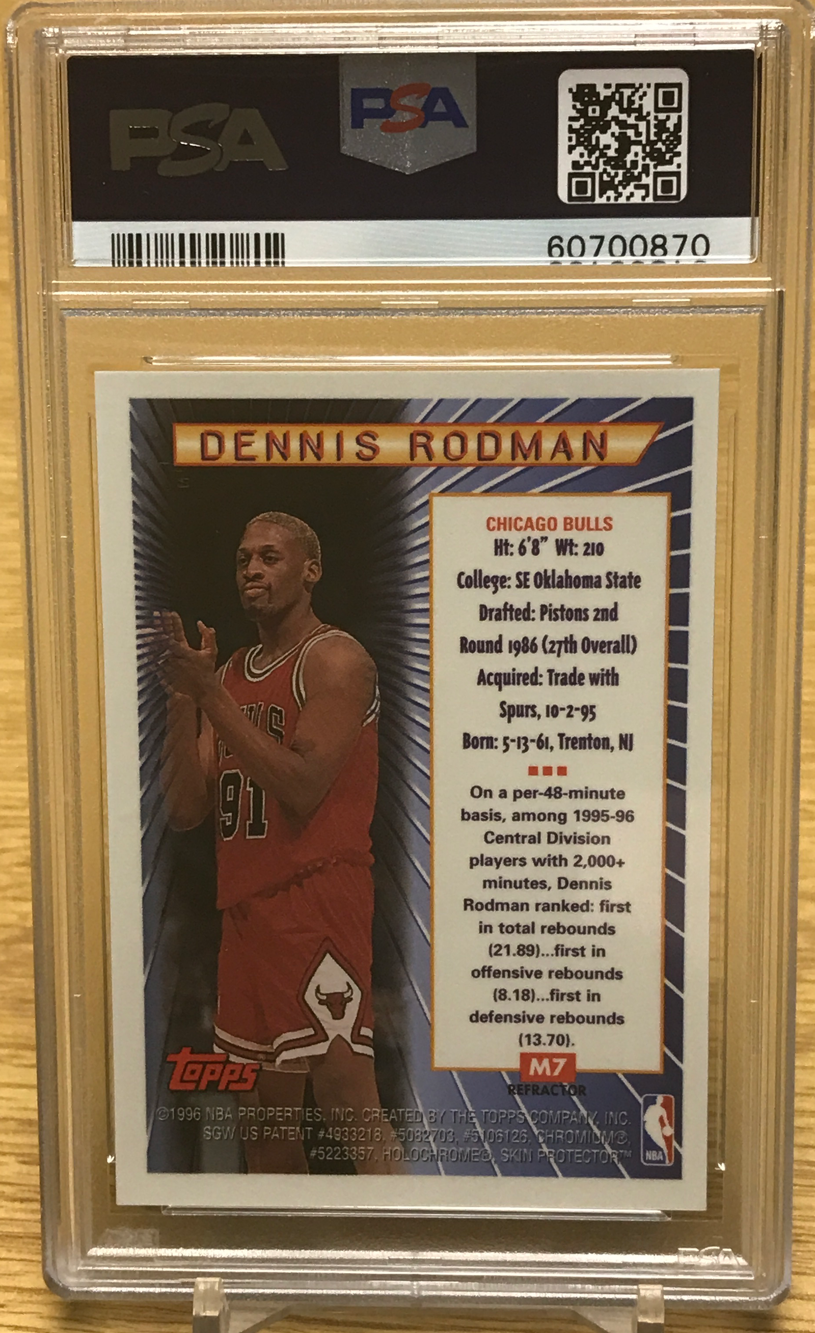 1996-97 Topps Mystery Finest REFRACTOR Dennis Rodman PSA 9 MINT Bordered Bulls