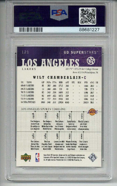2002 UPPER DECK SUPERSTARS #121 WILT CHAMBERLAIN CARD LAKERS PSA 10 LOW POP
