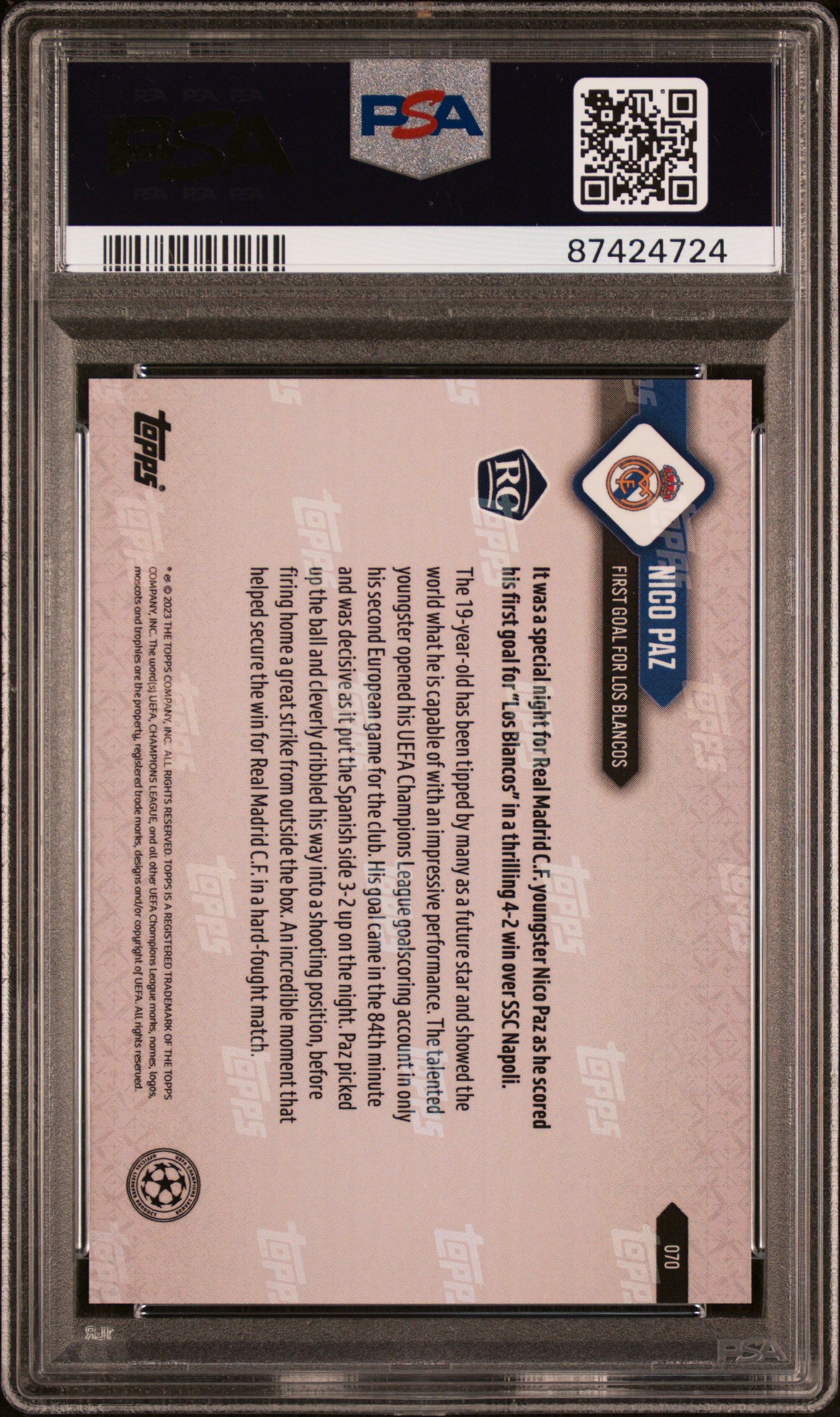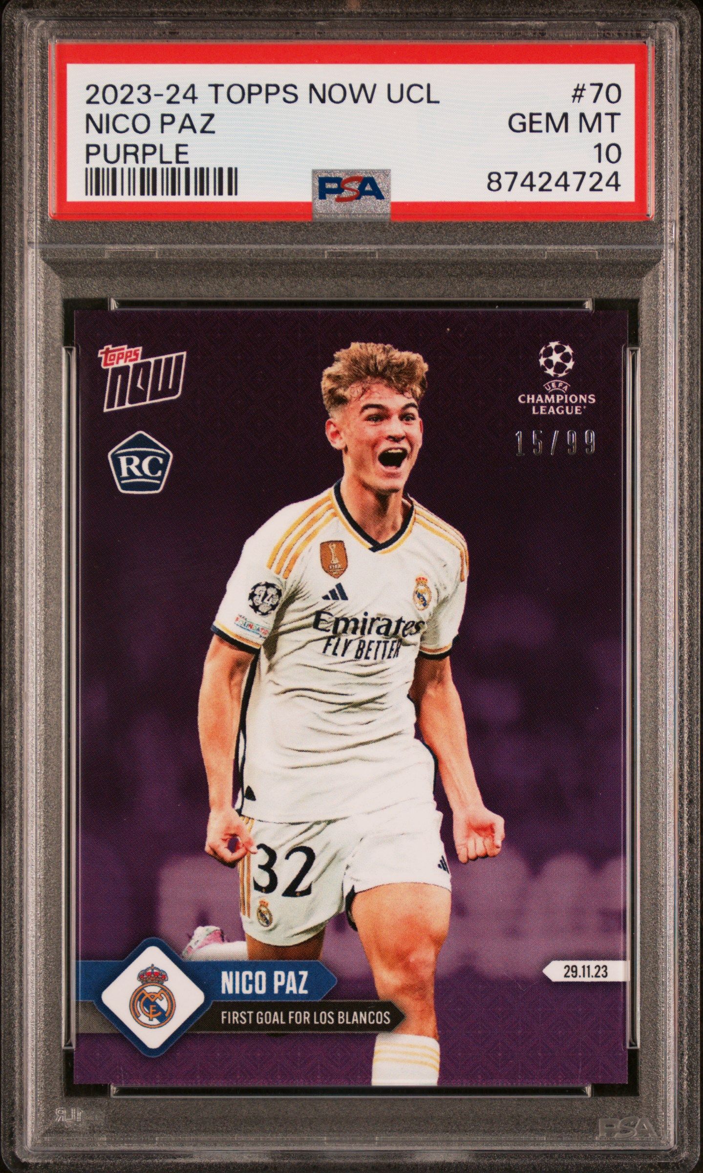2023 TOPPS NICO PAZ NOW UEFA CHAMPIONS LEAGUE PURPLE #70 PSA 10