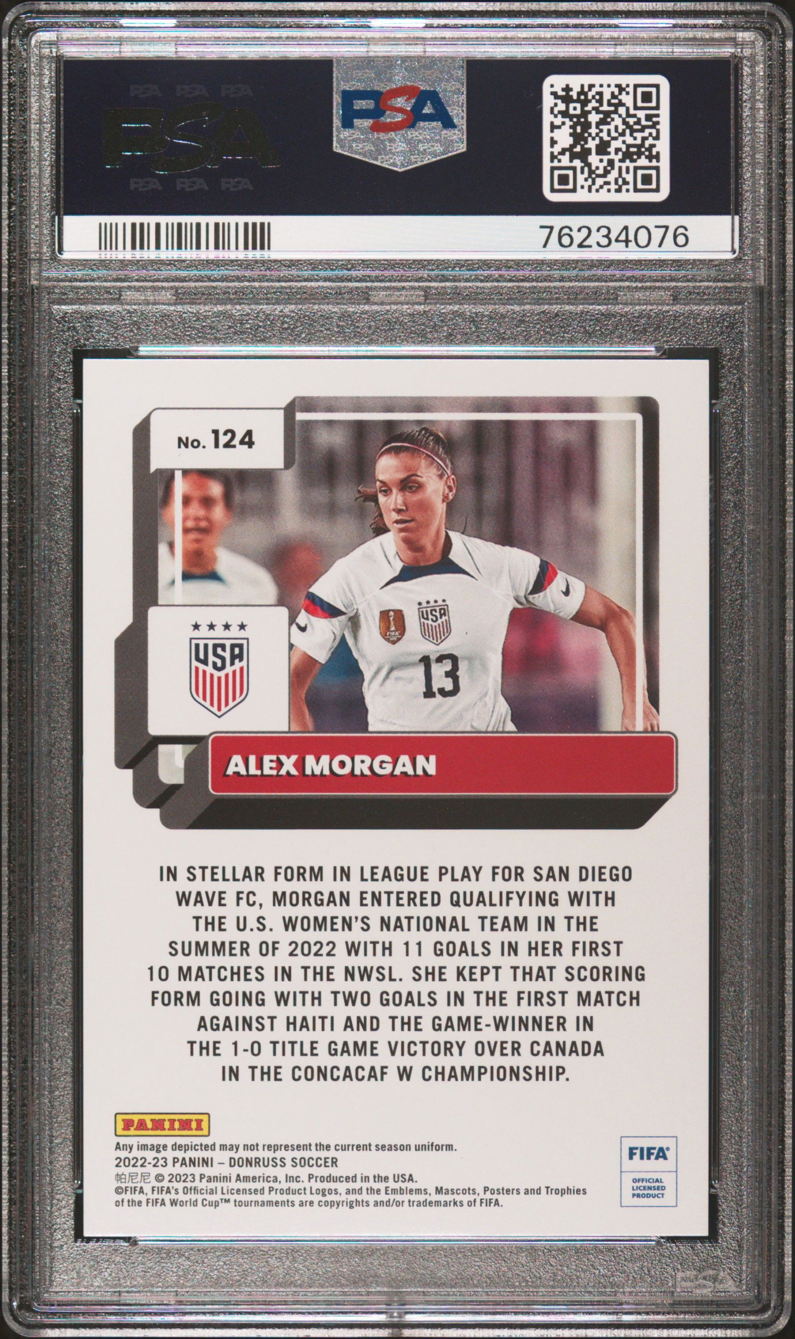 2022 DONRUSS PANINI FIFA ALEX MORGAN PURPLE #124 PSA 9