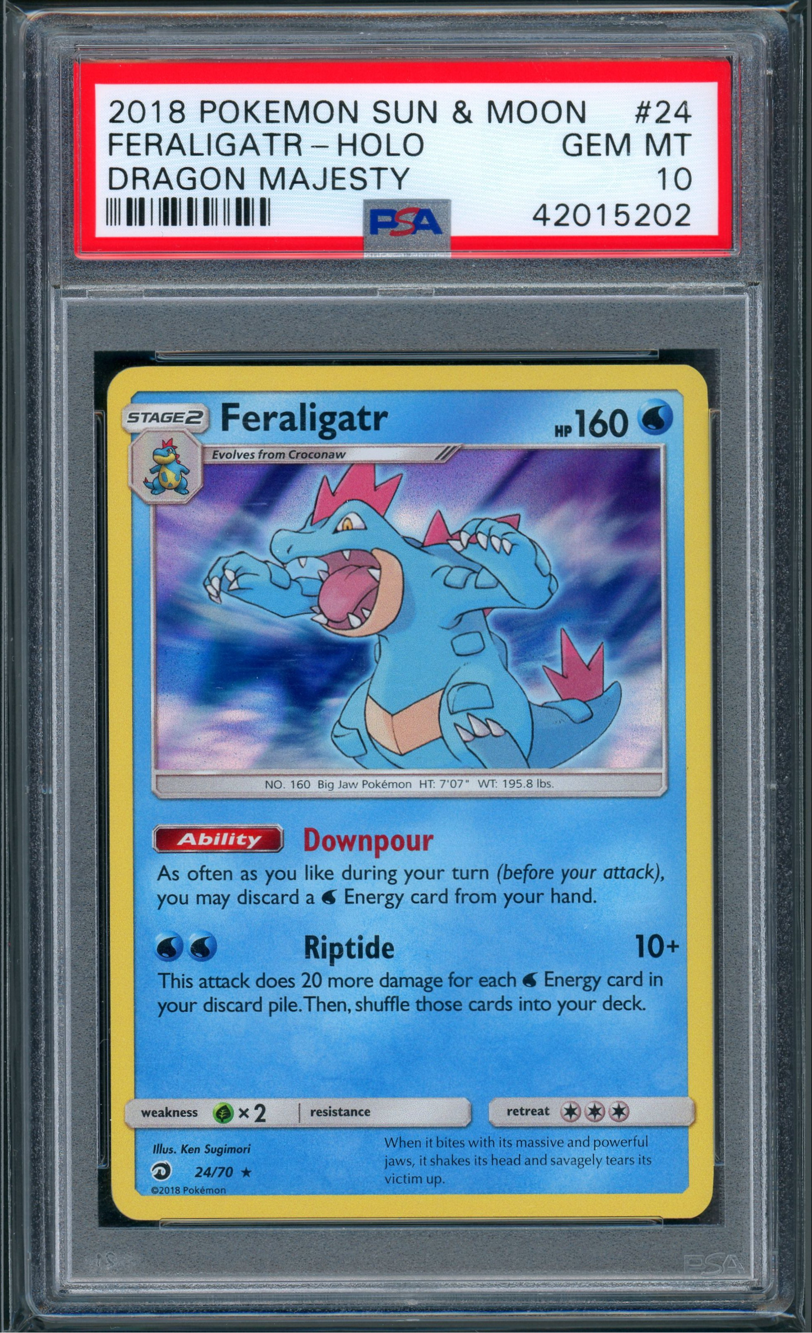 #24 FERALIGATR-HOLO | 2018 POKEMON SUN & MOON DRAGON MAJESTY PSA 10