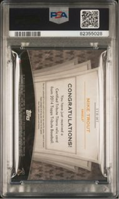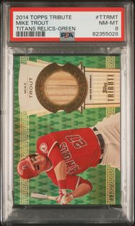 2014 TOPPS TRIBUTE TITANS RELICS TTRMT MIKE TROUT GREEN SP /25 PSA 8 NM-MT NONE HIGHER!