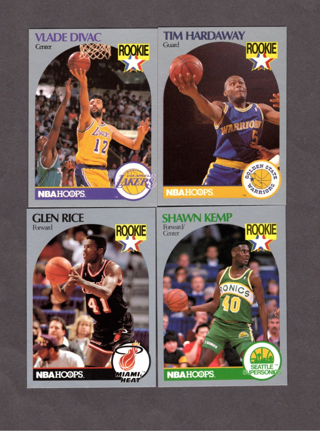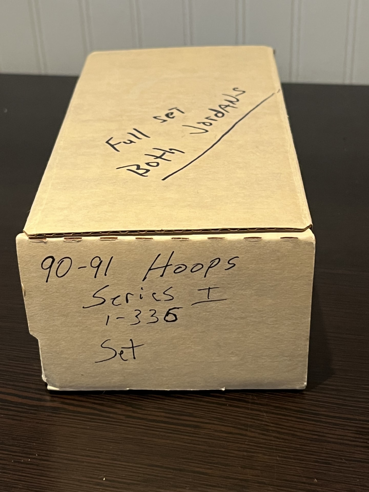 You are bidding on a 1990-91 Hoops NBA Basketball complete Set 1-336. Includes rookie cards of Shawn Kemp, Tim Hardaway, Vlade Divac, Glen Rice and more. Set is mostly NM condition a few better, a few worse. Most common issue is slight corner touches. Both Jordans have edge wear, see pics.