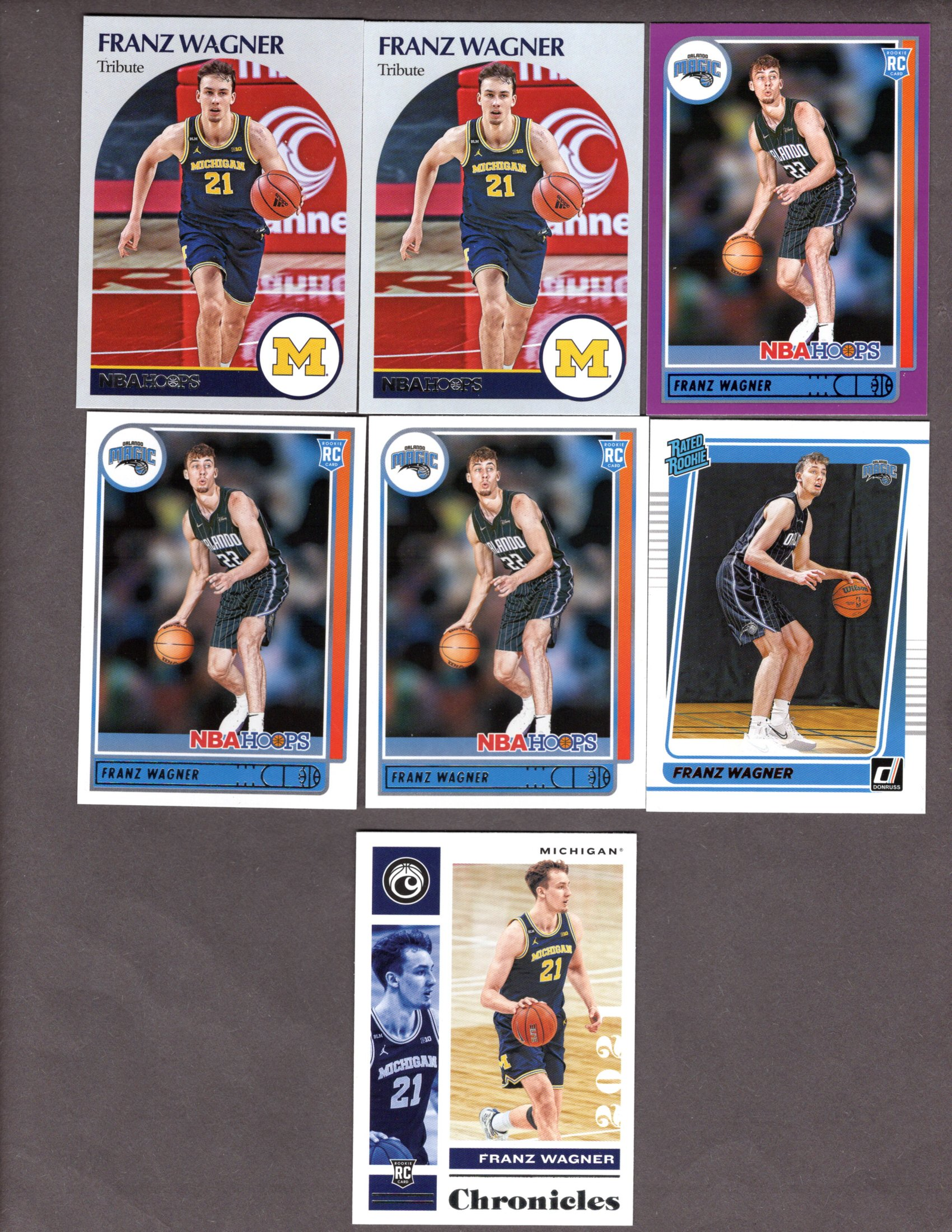 You are bidding on a lot of (16) Franz Wagner basketball cards! Lot includes a nice variety of rookies! Every card is pictured. Cards included: 21-22 Donruss Draft #34 RC x2 21-22 Donruss Draft Gold #34 RC 21-22 Donruss #235 RC x2 21-22 Hoops #235 RC x2 21-22 Hoops Pink #235 RC 21-22 Playbook Draft #326 RC 21-22 Chronicles #9 RC x2 21-22 Gala #189 RC 21-22 Hoops Draft #59 x2 21-22 Luminance Draft #84 RC x2