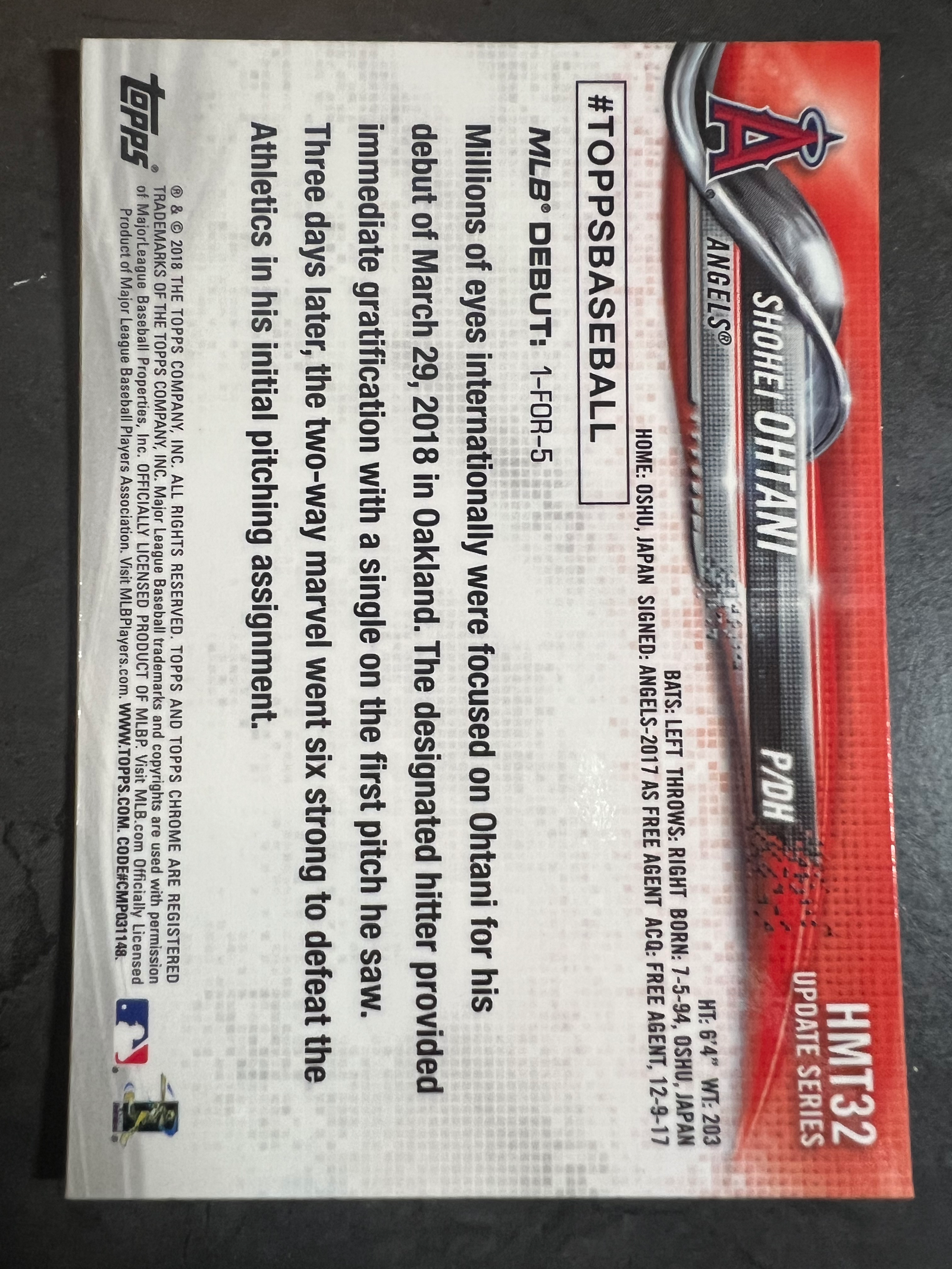 2018 Topps Chrome Update Shohei Ohtani Rookie Debut HMT32 Los Angeles Angels RC