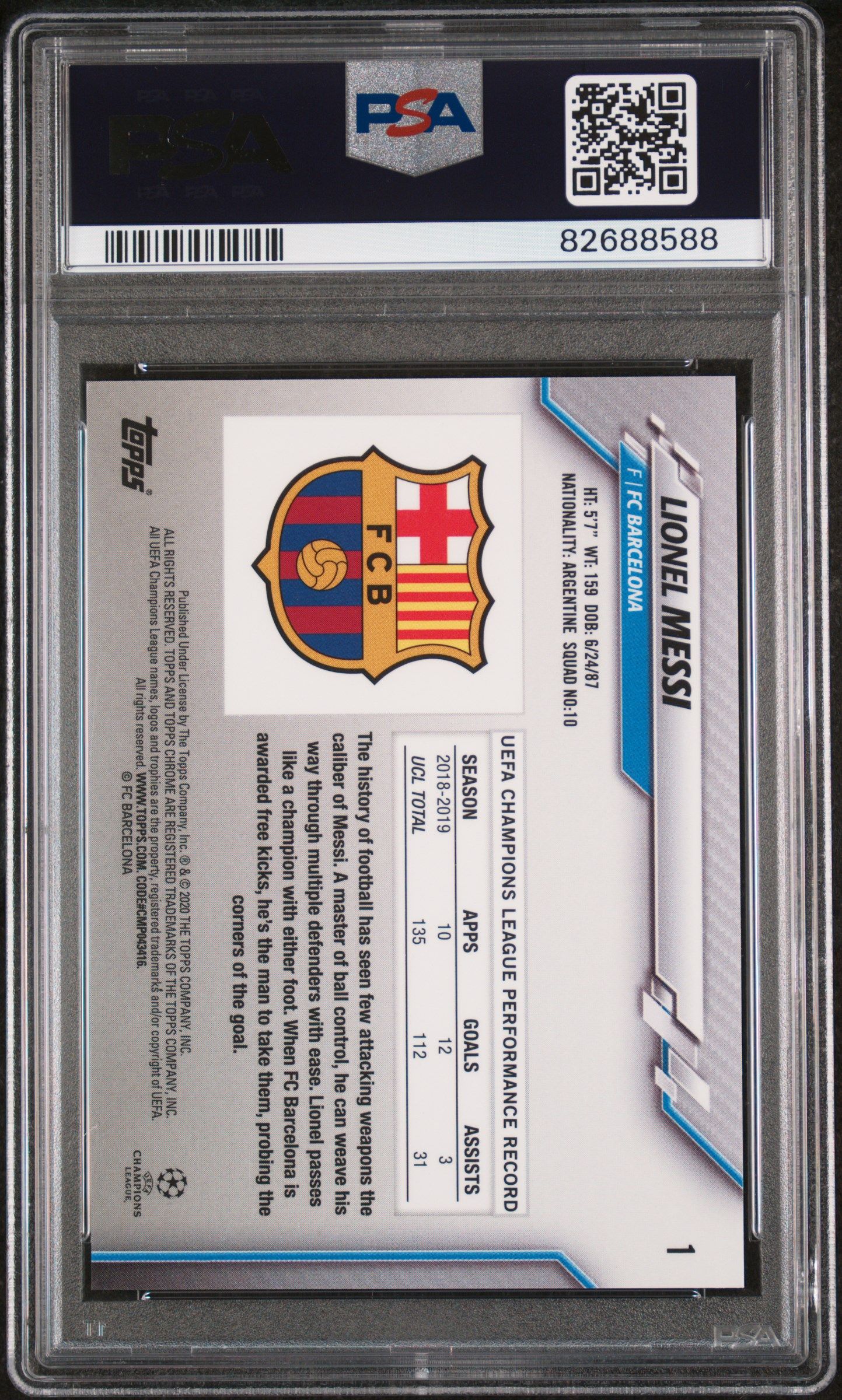 2019 TOPPS CHROME UEFA CHAMPIONS LEAGUE SAPPHIRE LIONEL MESSI #1 PSA 10