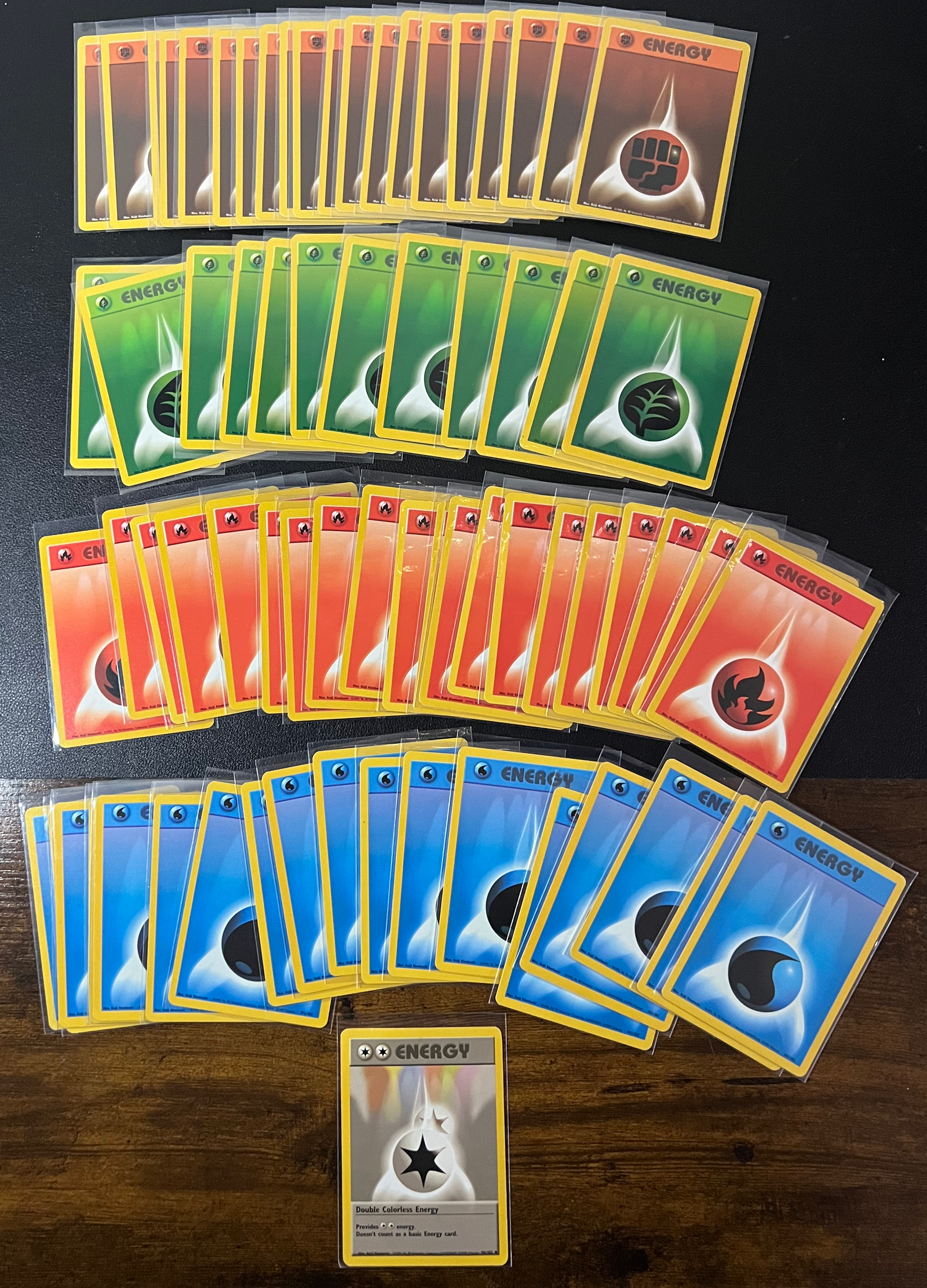 Lot Of 71 - 1999 VTG POKEMON BLUE RED ORANGE GREEN GREY ENERGY CARD BASIC