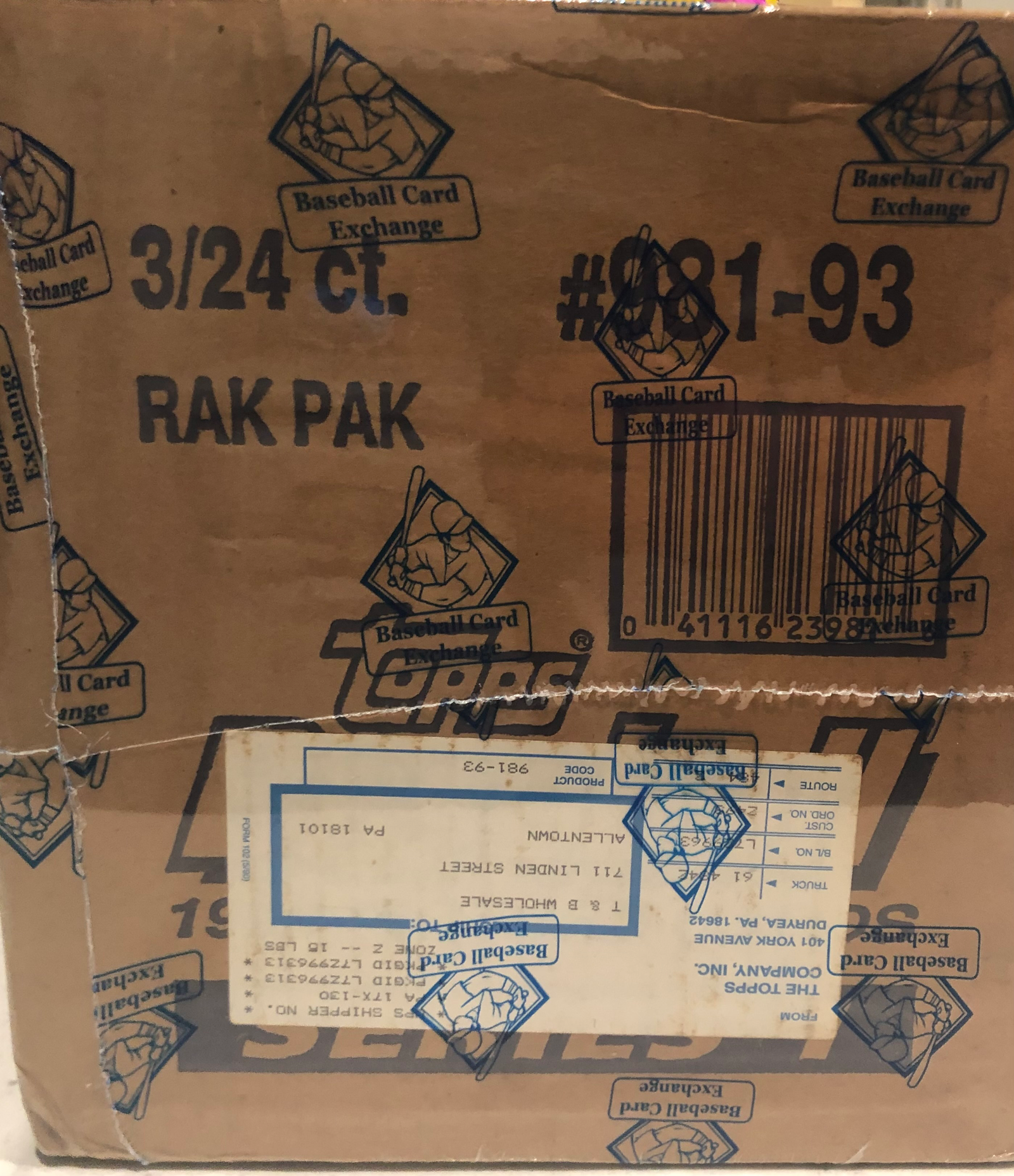1993 Topps Series 1 Baseball Rack Box Case BBCE Certified, consists of 3 rack boxes.