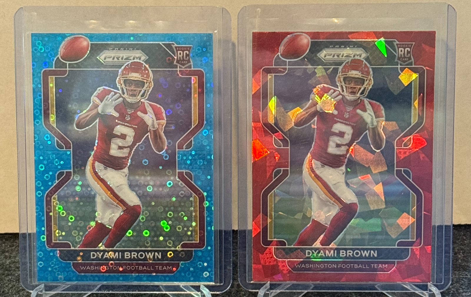 2021 Panini Prizm Dyami Brown RC Lot (2) 1. Blue No Huddle Prizm /79 2. Red Ice Prizm