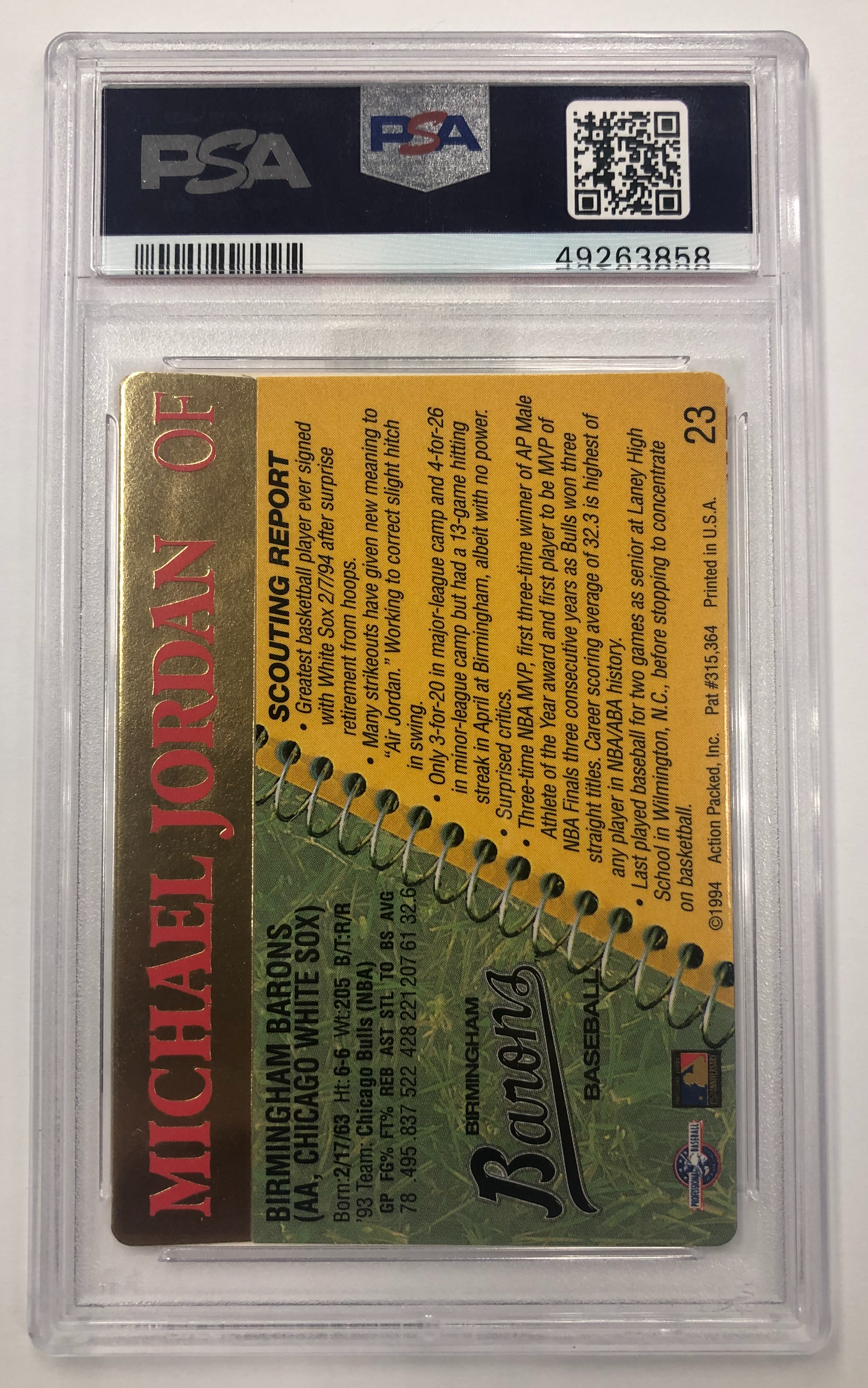 1994 Action Packed Michael Jordan Scouting Report PSA 10 Cert. Number 49263858