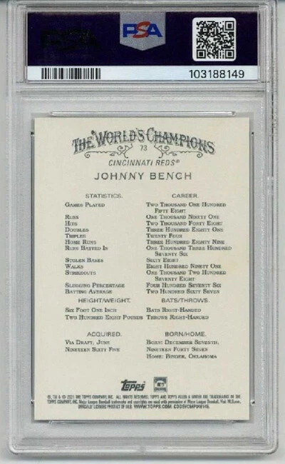 2021 TOPPS ALLEN & GINTER X #73 JOHNNY BENCH CARD REDS PSA 10 LOW LOW POP