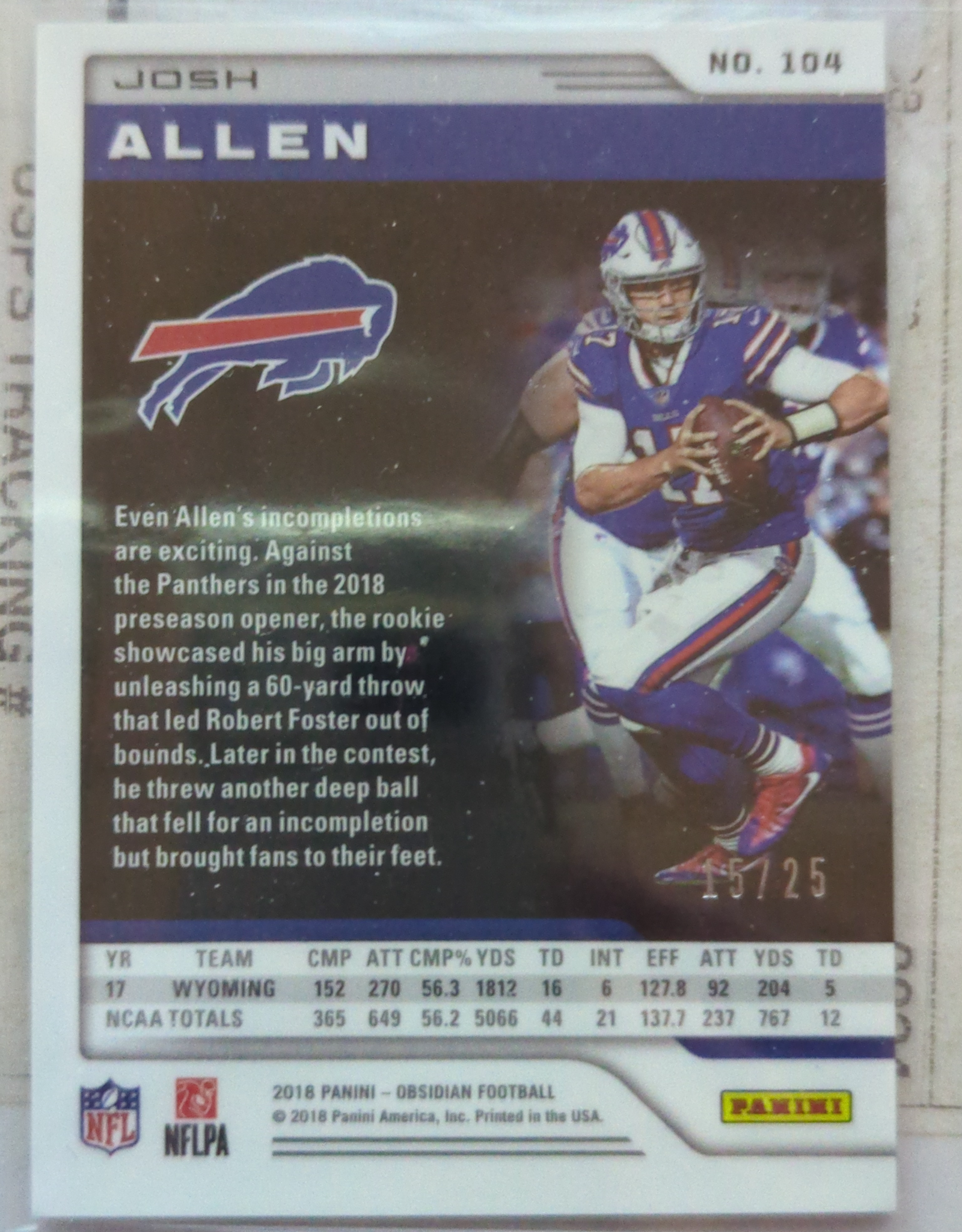 2018 Obsidian Green Etch Rookie Josh Allen /25