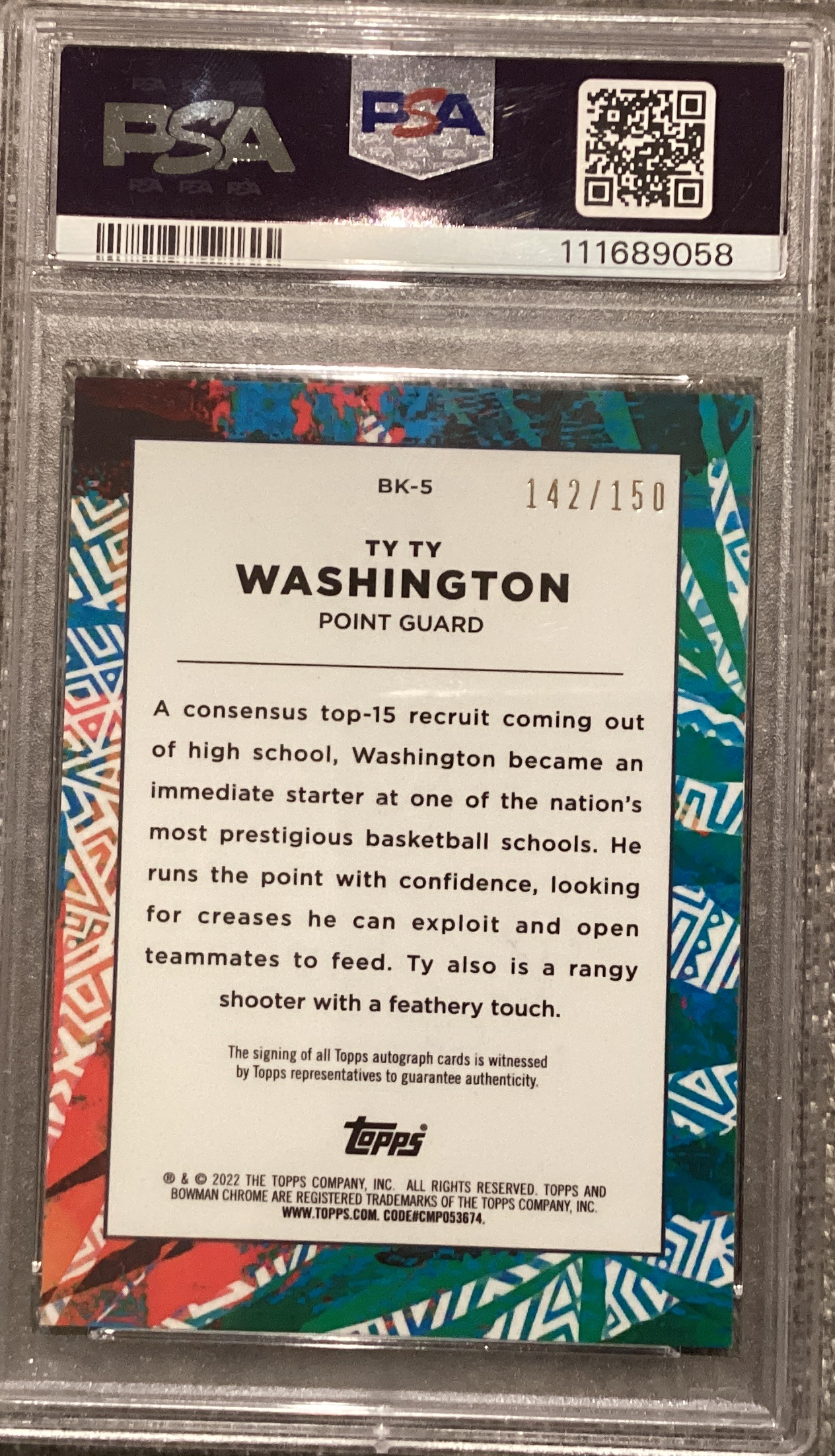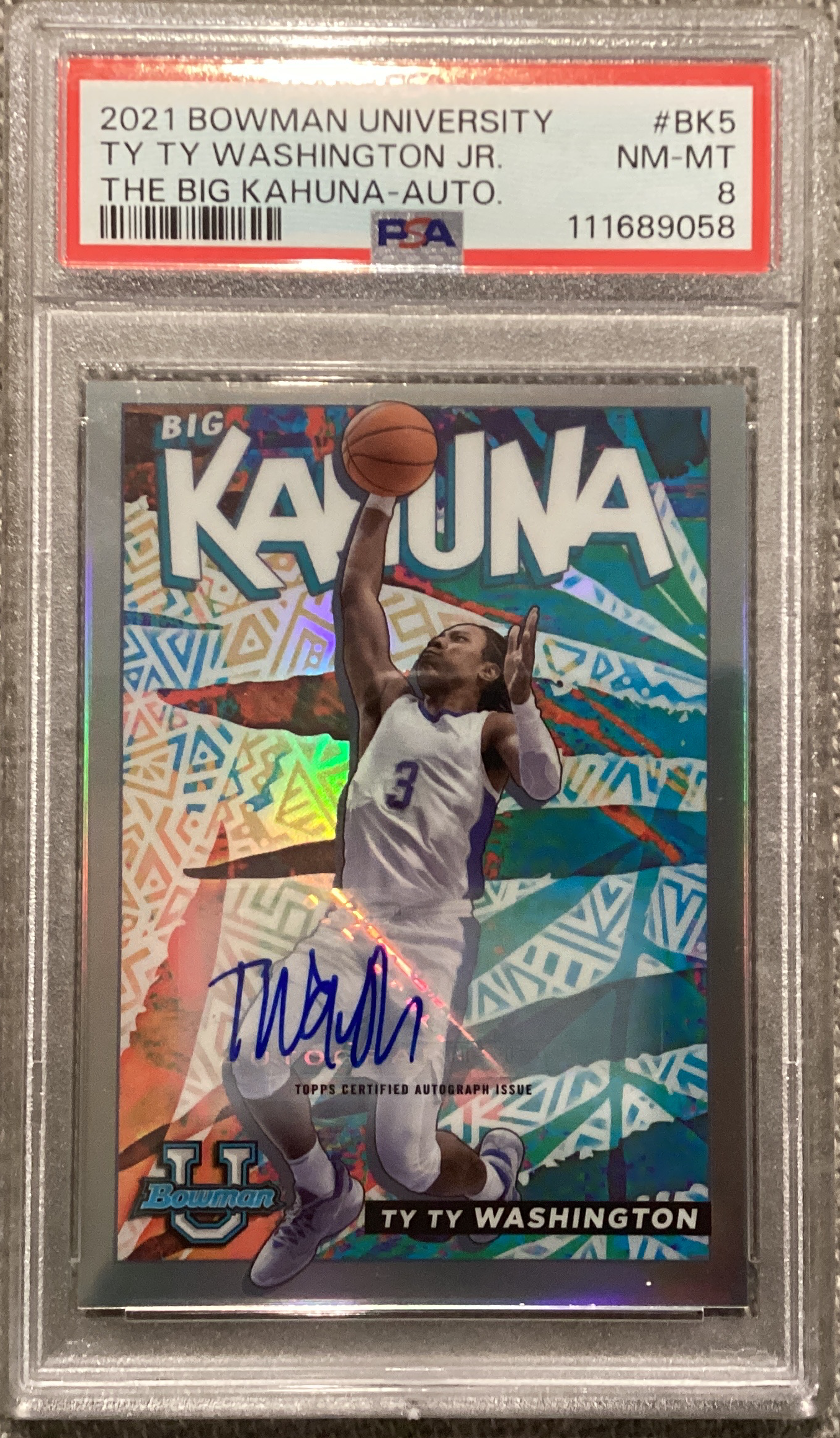 2021 BOWMAN CHROME UNIVERSITY TY TY WASHINGTON JR BIG KAHUNA AUTO PSA 8 CASE HIT SSP /150