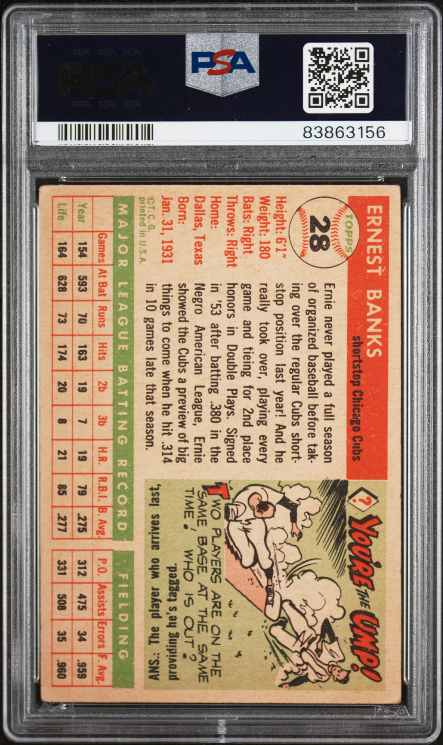 1955 Topps Ernie Banks PSA Grade 5