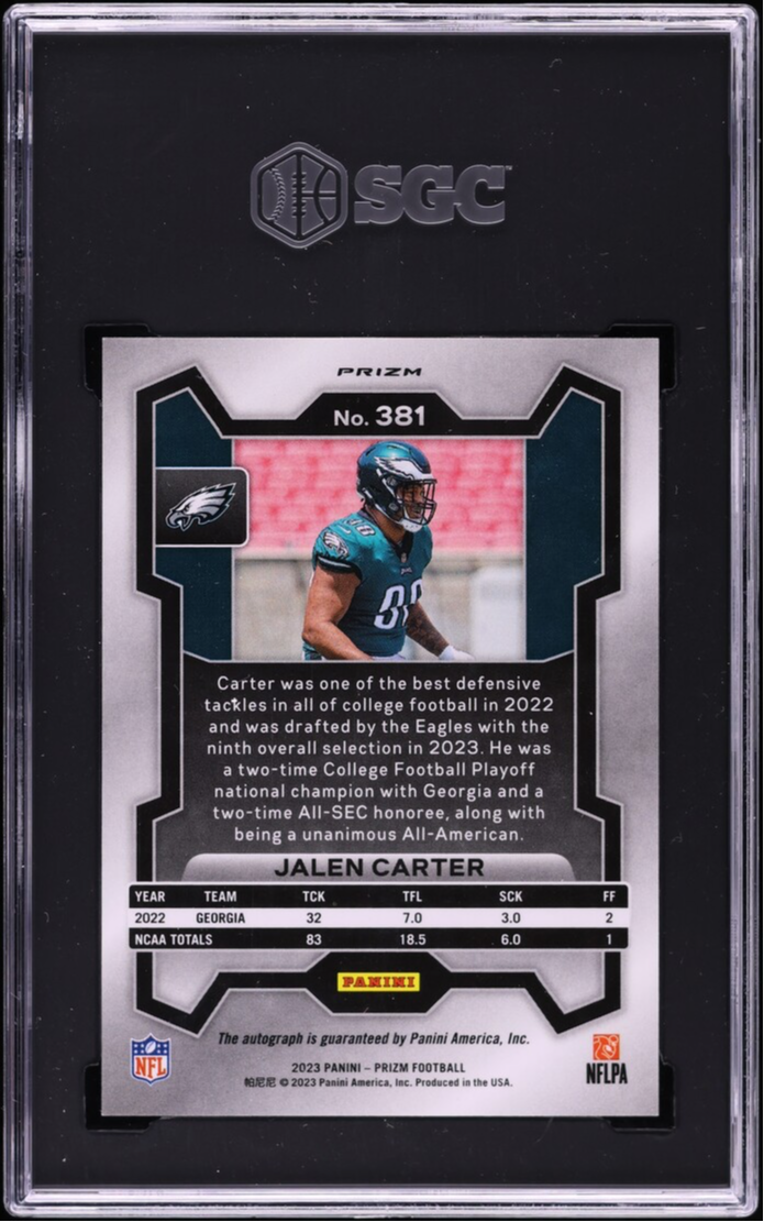 2023 Panini Prizm Jalen Carter No Huddle Auto SGC 10/10