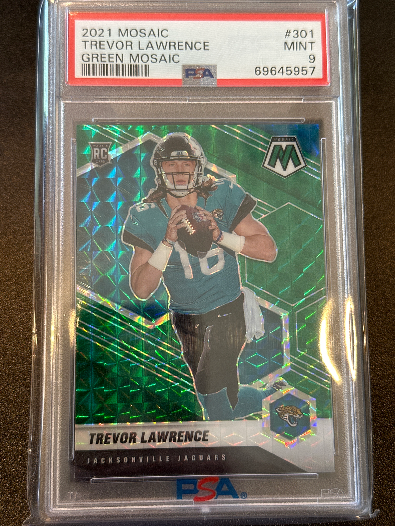 2021 Mosaic Green Prizm #301 RC Trevor Lawrence PSA 9