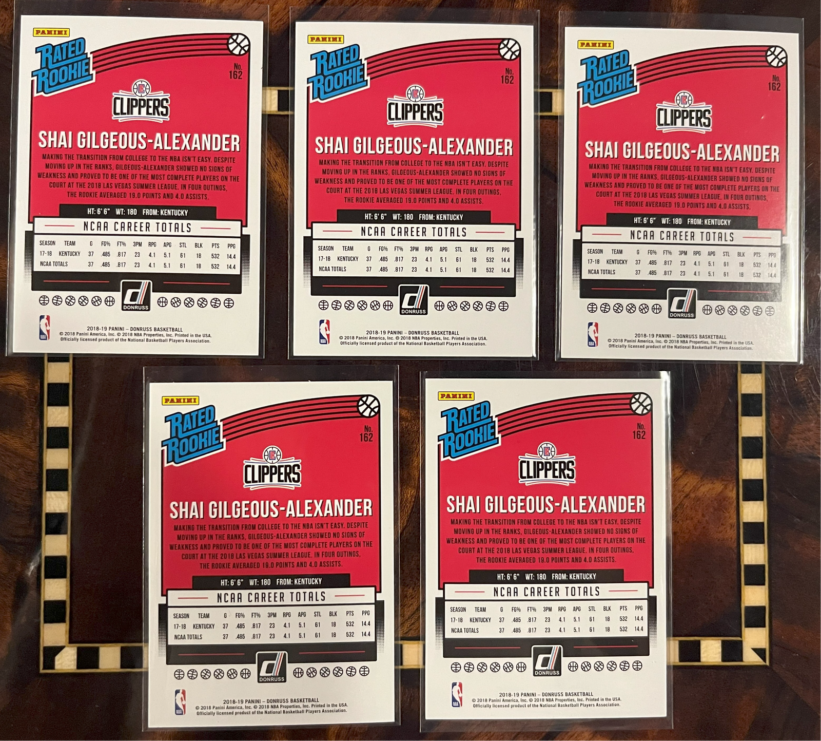 2018 DONRUSS SHAI GILGEOUS ALEXANDER #162 RATED ROOKIE Lot of 5