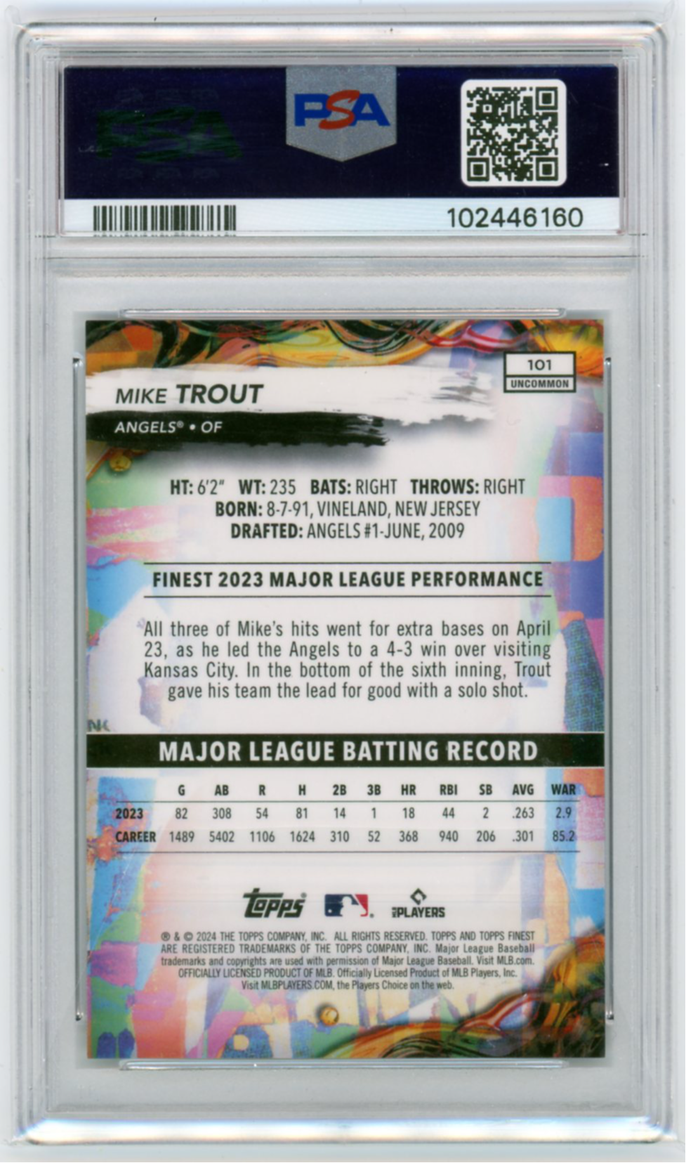 2024 Finest #101 Mike Trout Gold Refractor PSA 10 GEM MINT!