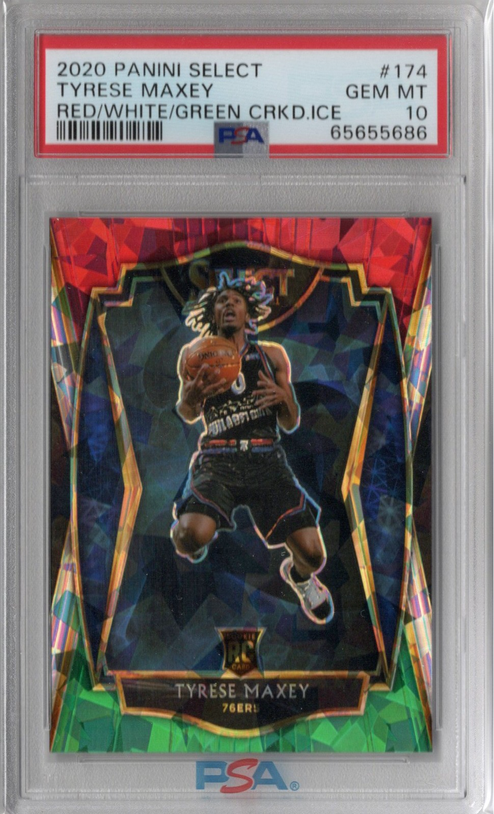 2020 PANINI SELECT ROOKIE RC RED/WHITE/GREEN CRACKED ICE PRIZM - TYRESE MAXEY #174 - PSA 10