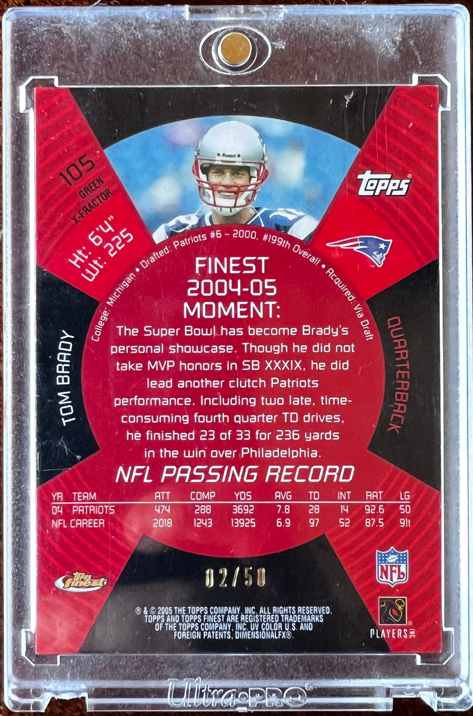 2005 Topps Finest Tom Brady Green Refractor Xfractor /50