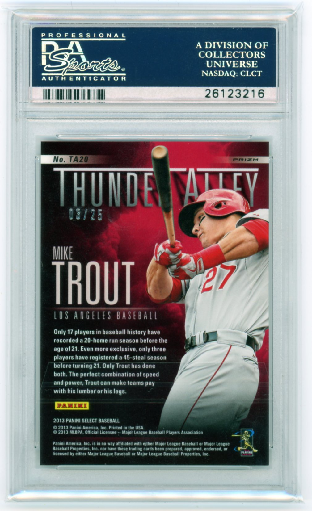 2013 Panini Select #TA20 Mike Trout Thunder Alley-Gold Prizm PSA 10 GEM MINT!