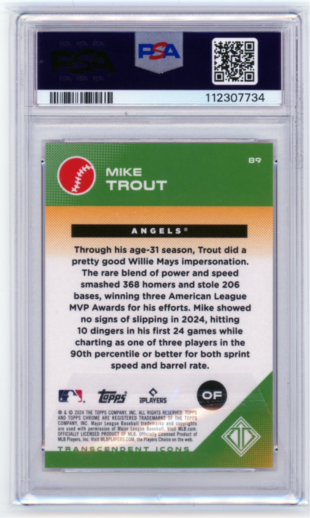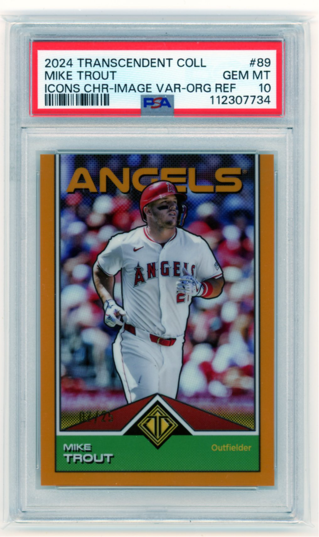 2024 Transcendent Collection #89 Mike Trout Icons Chrome-Image Variation Orange Refractor PSA 10 GEM MINT!