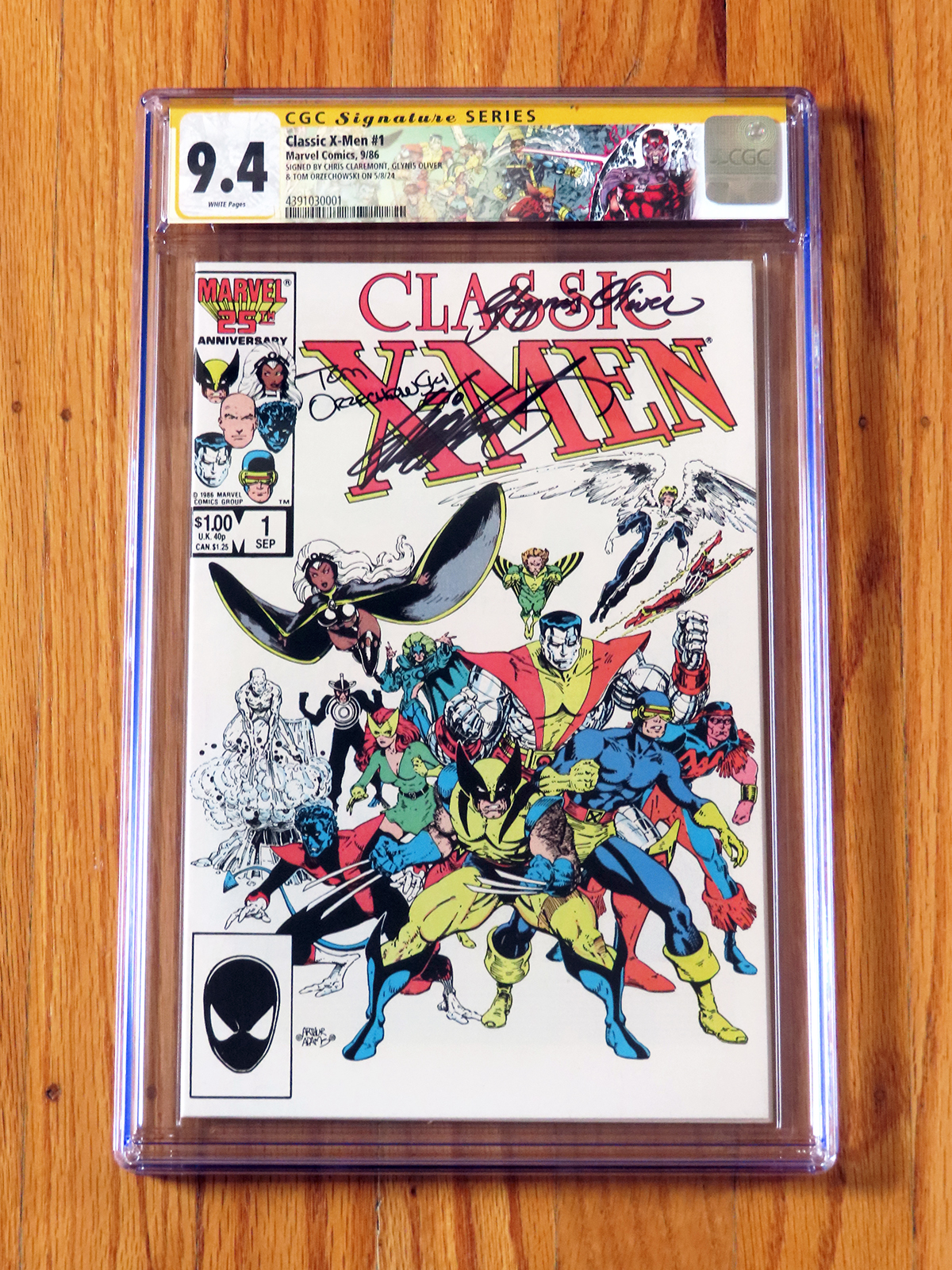 🚨 Triple signed iconic X-Men cover! 🚨 CLASSIC X-MEN 1 + Signed by Chris Claremont, Glynis Oliver, & Tom Orzechowski on 5/8/24 + Custom X-Men label + CGC Signature Series 9.4 & White Pages