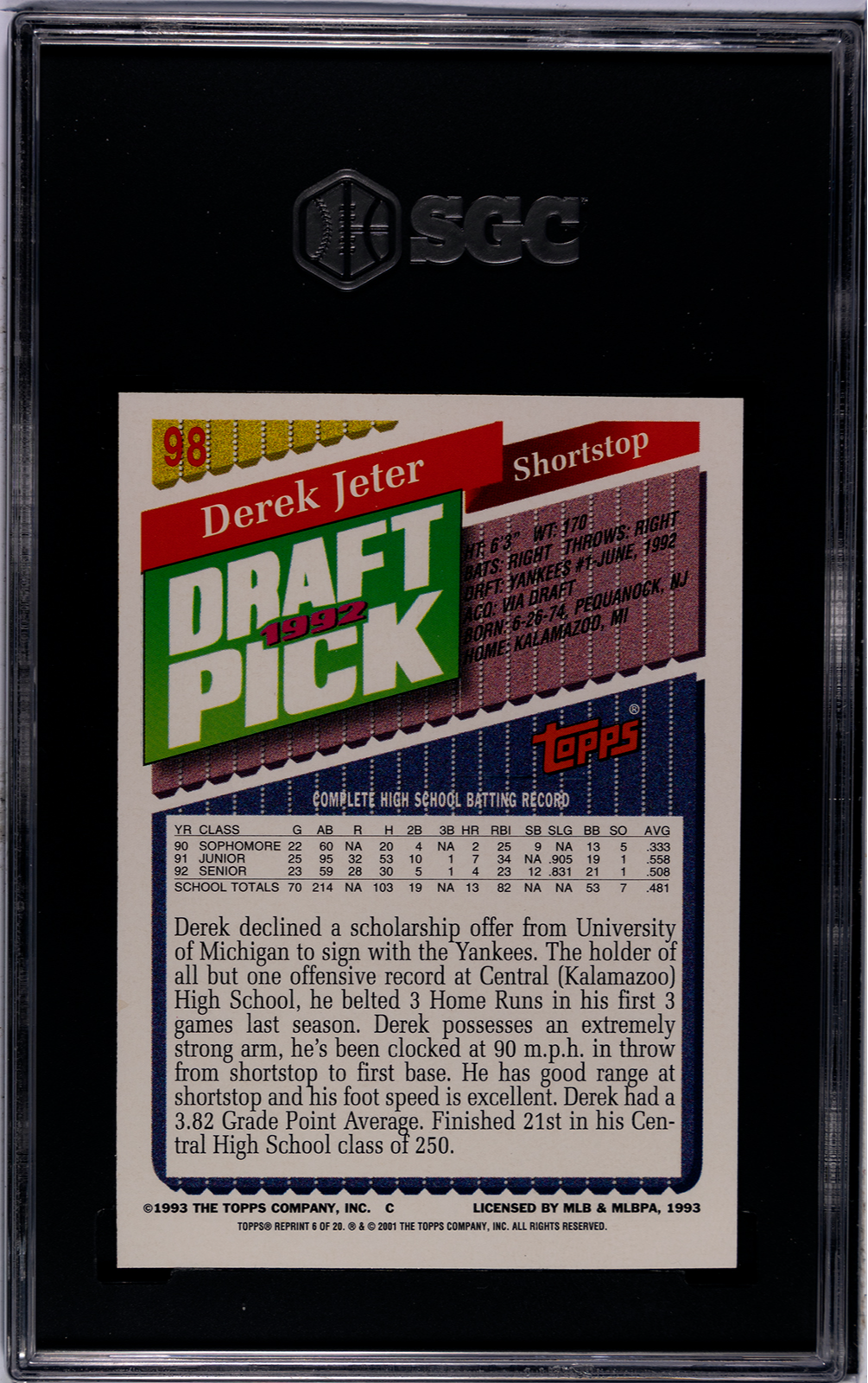 2001 Topps Archives Future Rookie Reprint Gold Derek Jeter #6 SGC 8