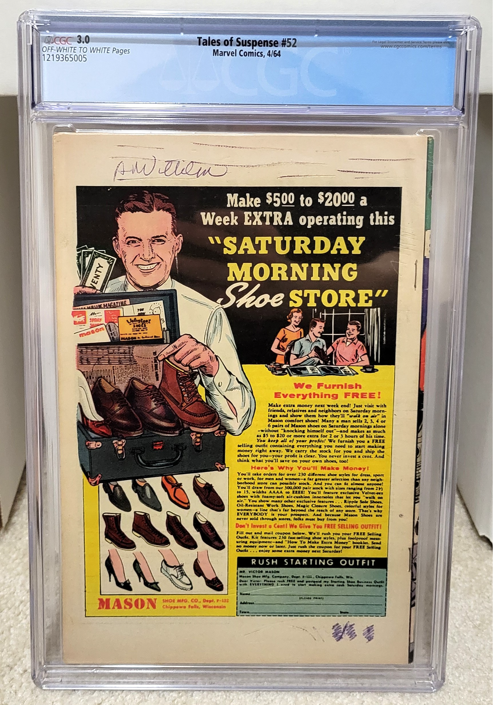 Jack Kirby goodness with Tales of Suspense #52. The first appearance of Black Widow (Natasha Romanoff) is a Silver Age Marvel key introducing the popular Avenger to the Marvel universe. The case is in good condition, overall, but it does have light newton rings and light scuffs. Thanks and have a great day!